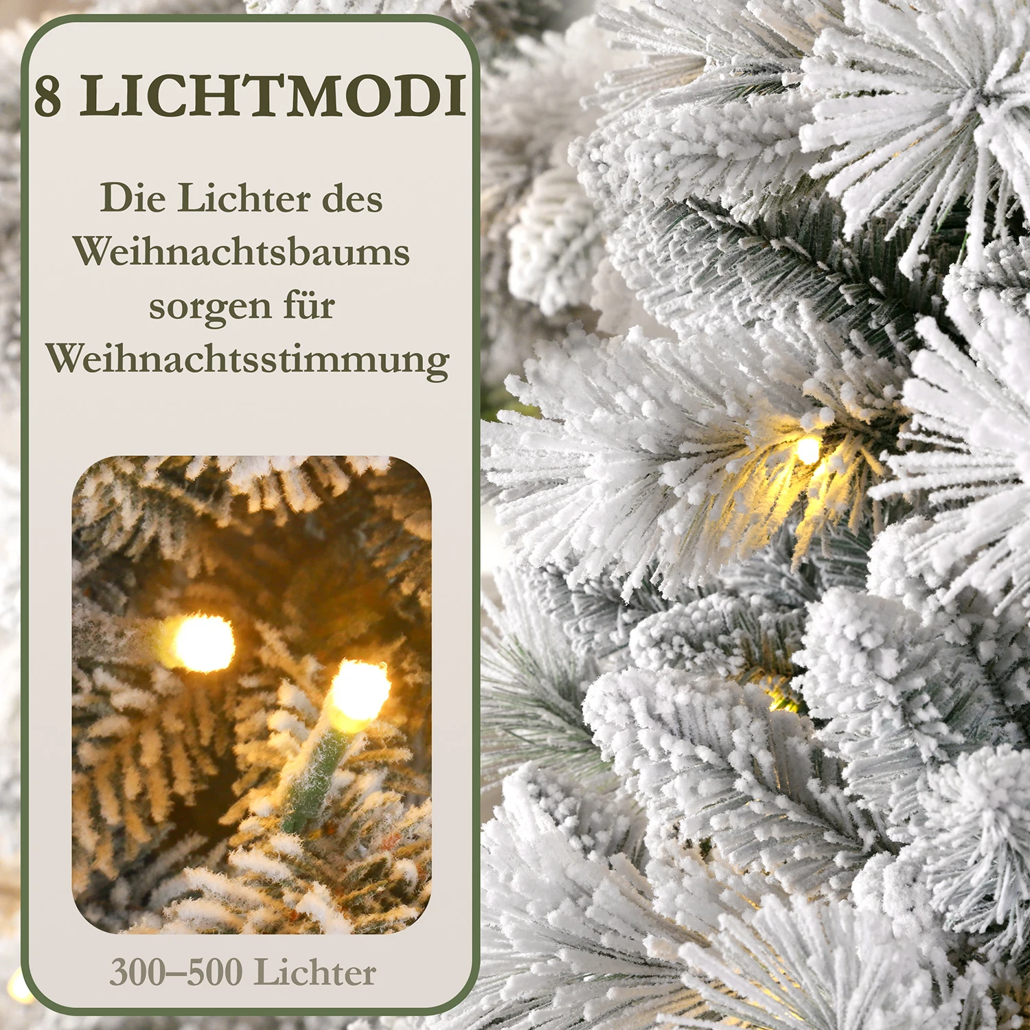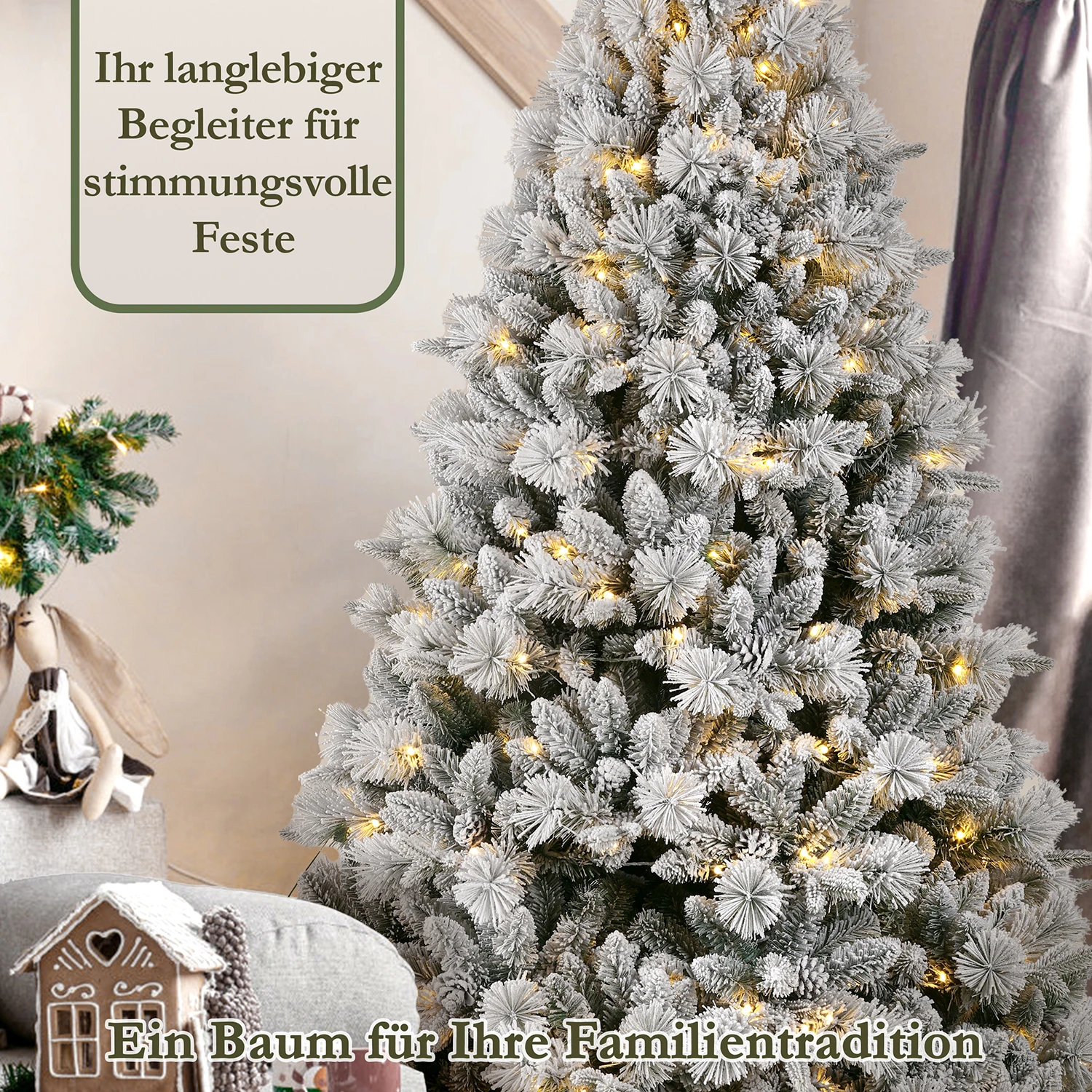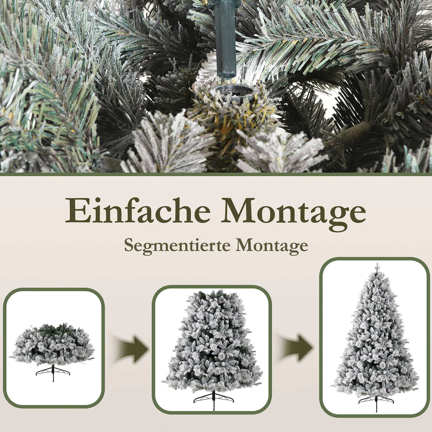 Our artificial Christmas tree, crafted from premium PE+PVC and supported by a sturdy metal stand, is the perfect centerpiece for your festive home. With its realistic snow effect, it looks especially natural and creates a magical Christmas atmosphere.