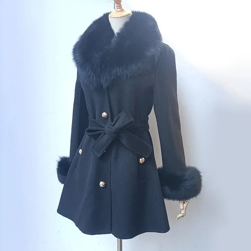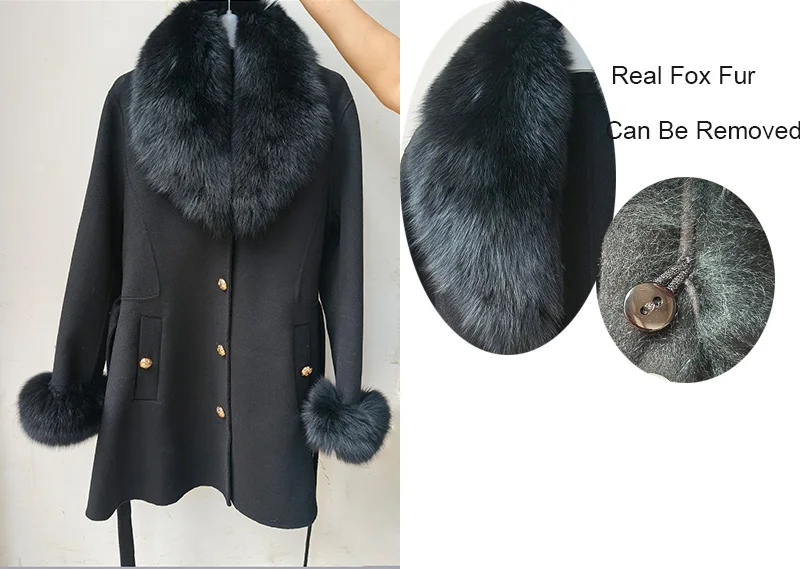 2023 Winter Real Fox Fur Coat Women Wool Jacket With Natural Fox Fur Collar Slim Female Woolen Cashmere Outwear