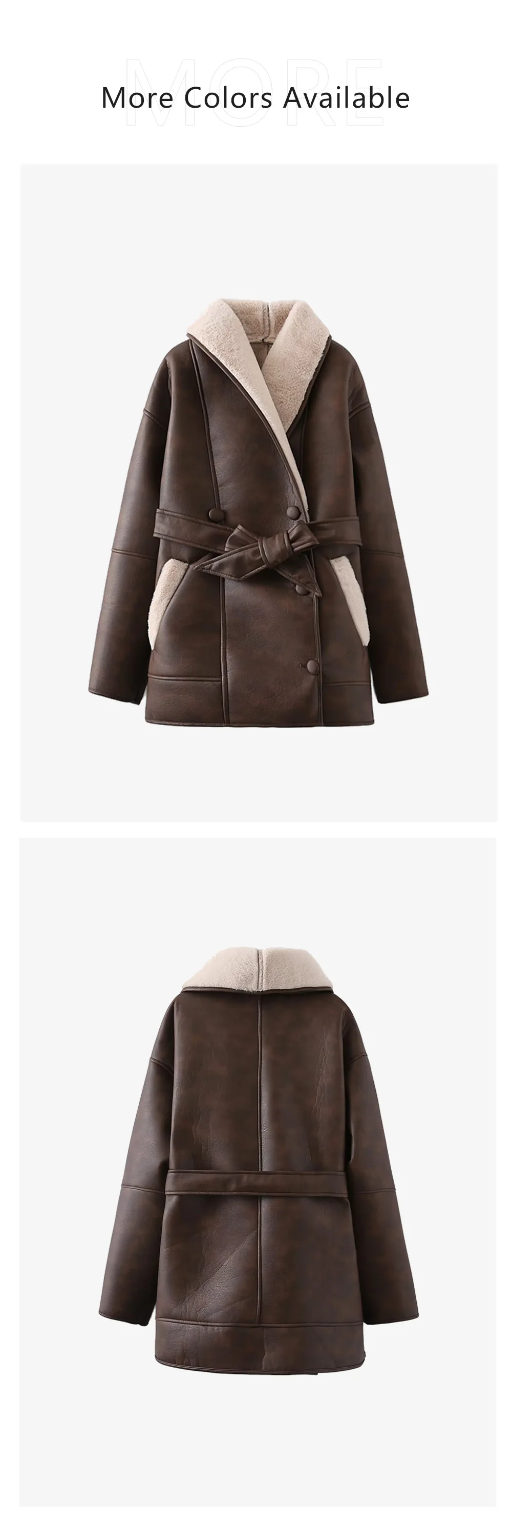 2024 autumn new women's clothing style fashionable hundred combinations belt dual color fur integrated windbreaker jacket