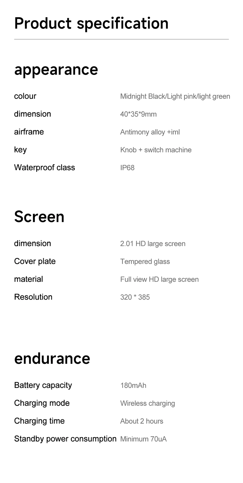 Function: Passometer,fitness tracker,sleep tracker,Mood Tracker,Message Reminder,Call Reminder,Answer Call,Dial Call,Push Message,Big Three Needles,24 hour instruction,Chronograph,Alarm Clock,Calorie Counter,Power Reserve,week,Month,Heart Rate Tracker,Interactive Music,Calendar,Countdown