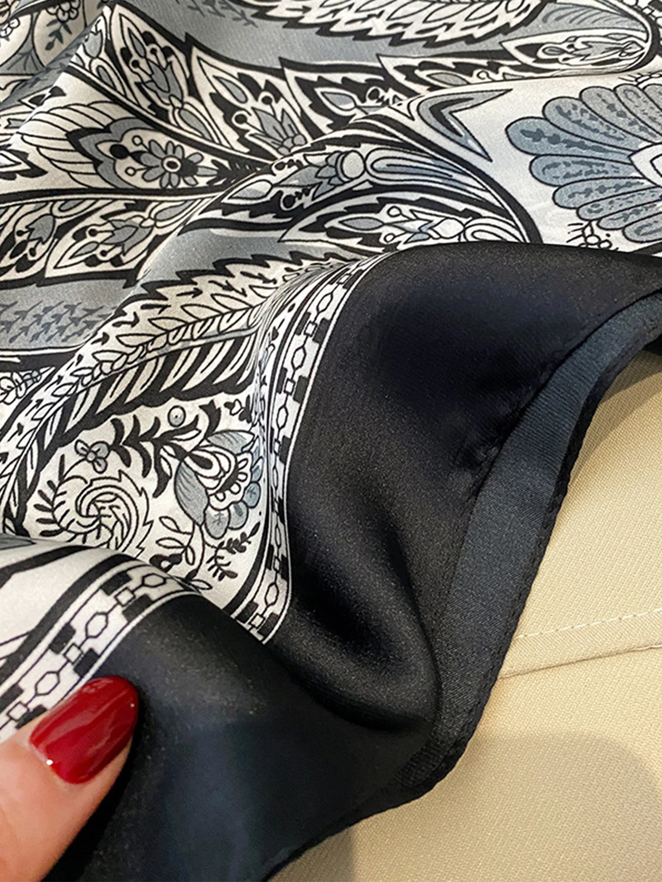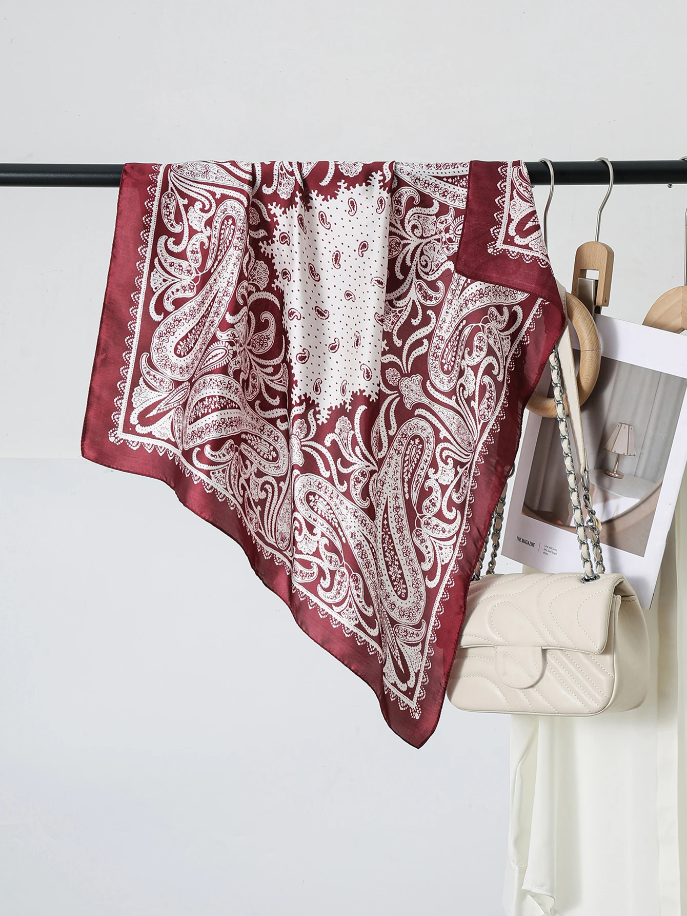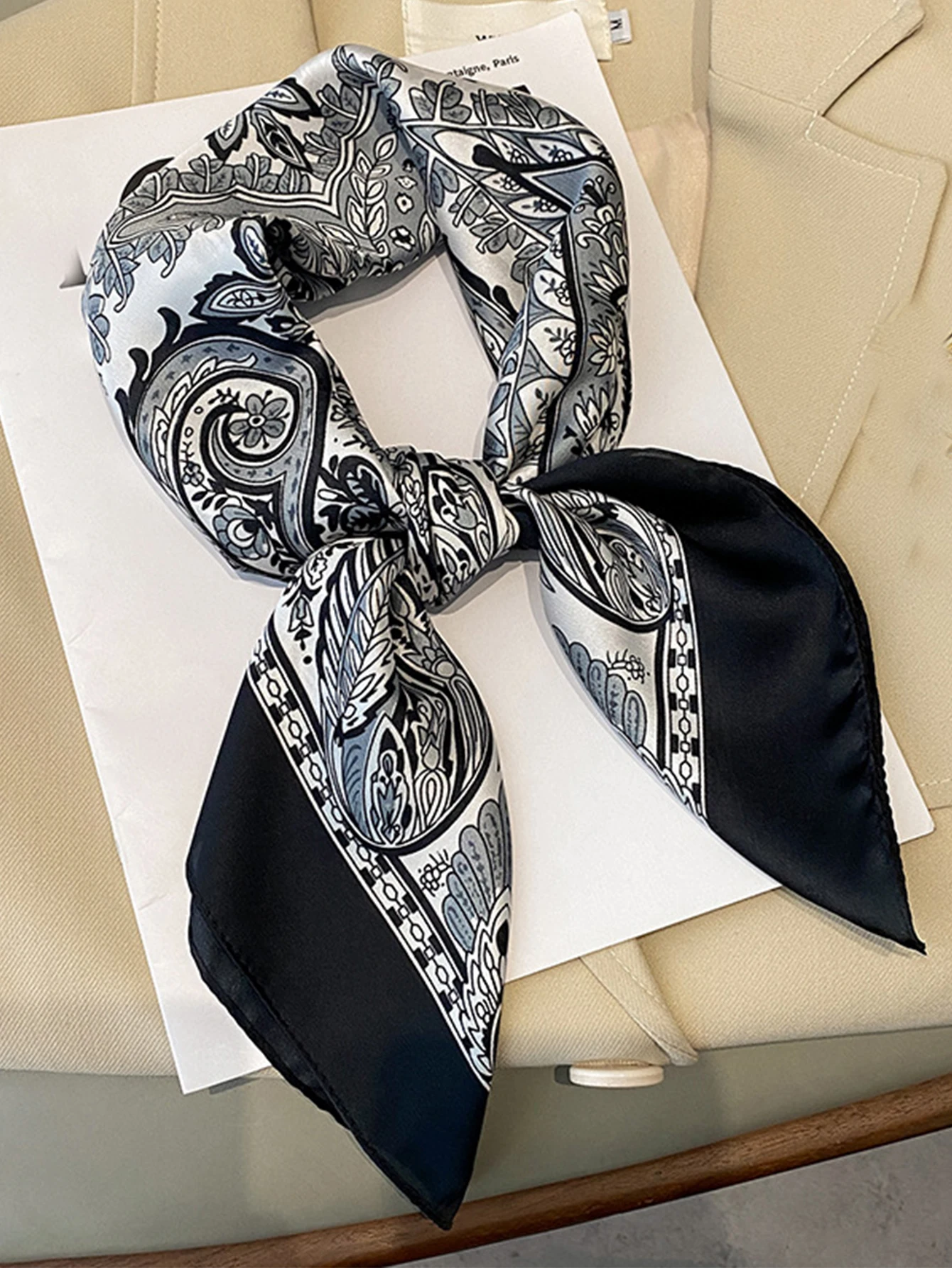 70cm Fashion Square Silk Scarf Satin Cashew Flower Print Small Neck Scarf Women Headscarf Kerchief Bandana Shawl Accessories