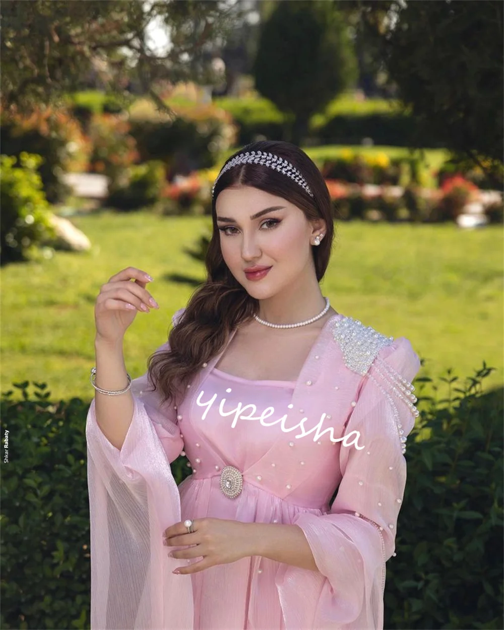 Customized Evening Organza Pearl Beading Prom A-line Square Neck Bespoke Occasion Gown Long Dresses Sexy Casual