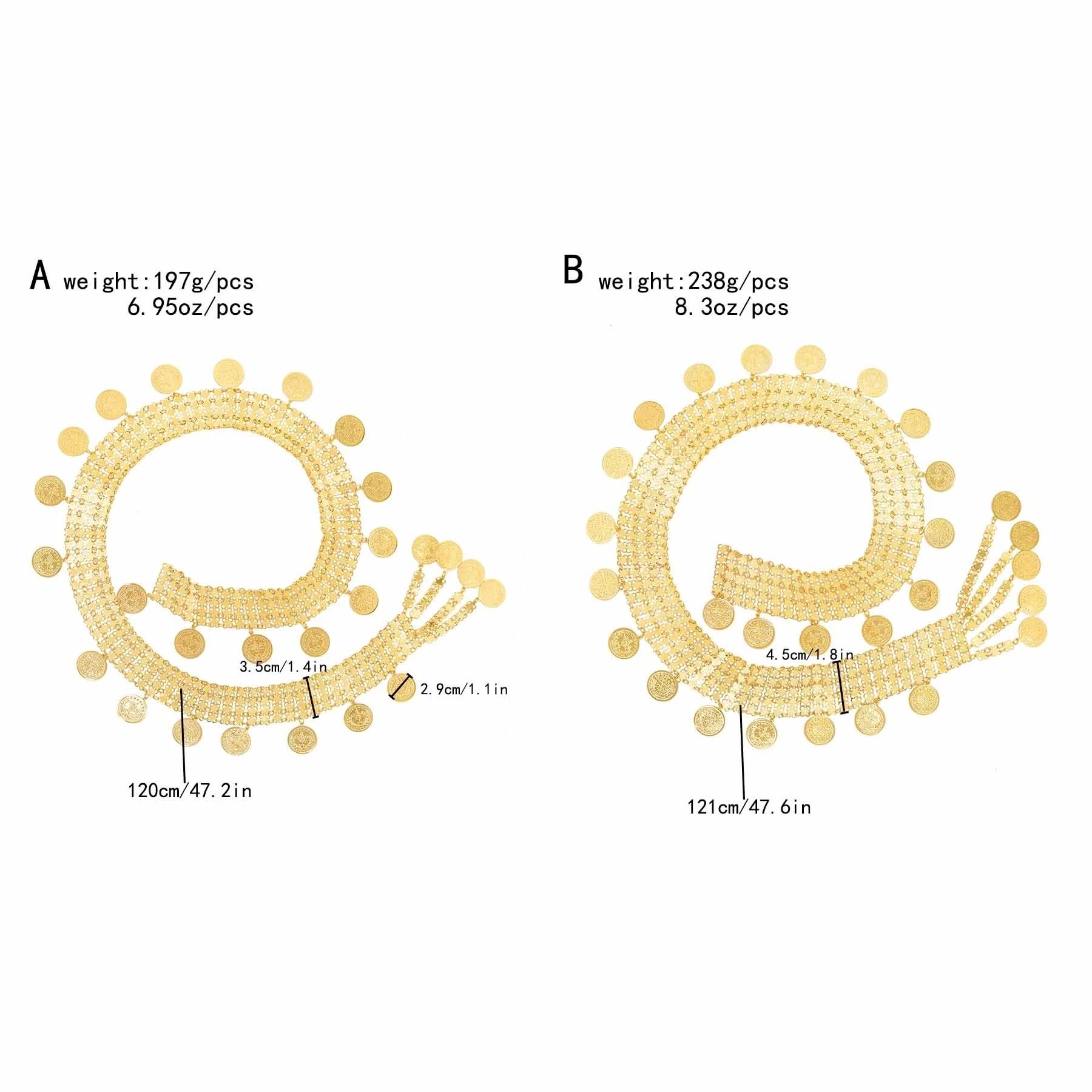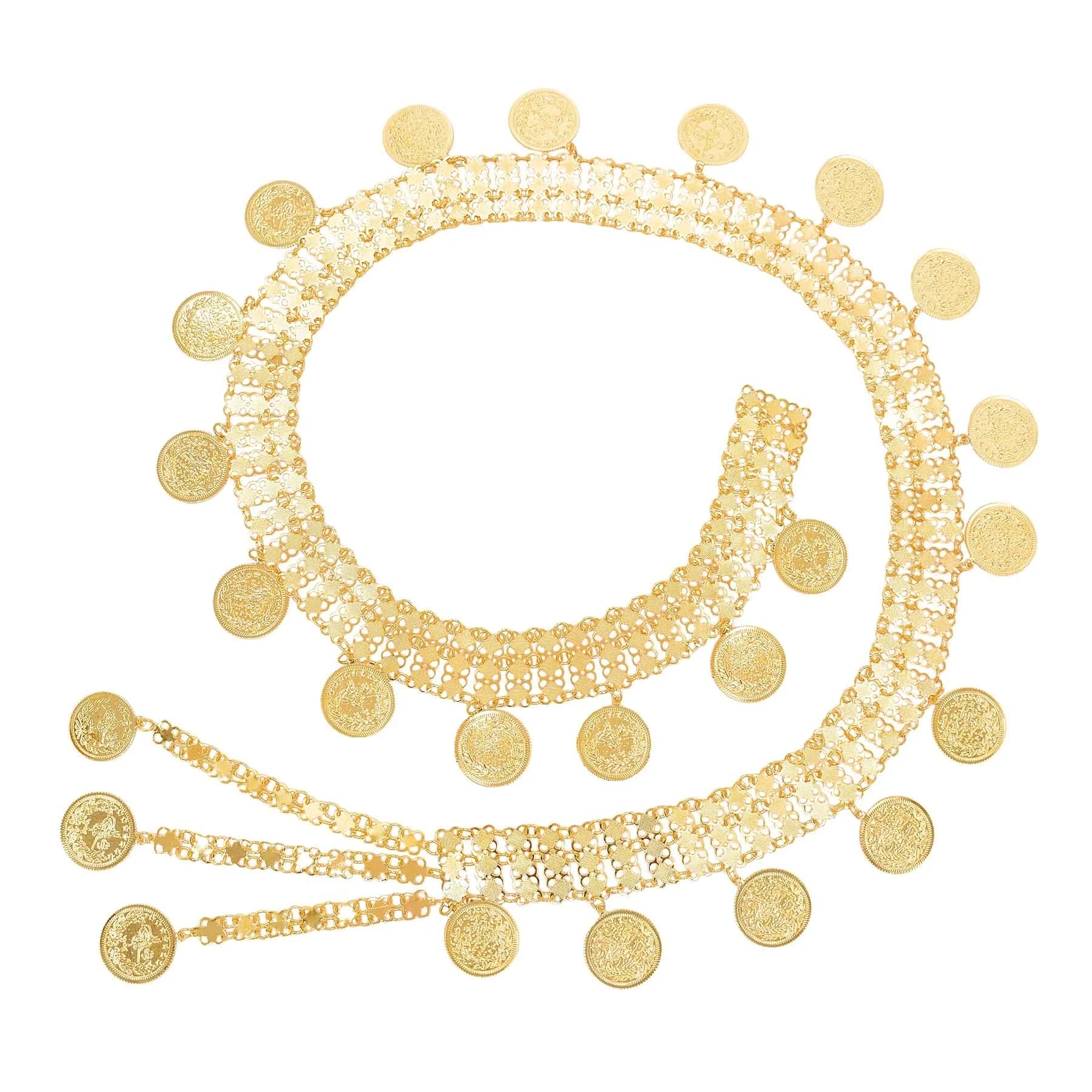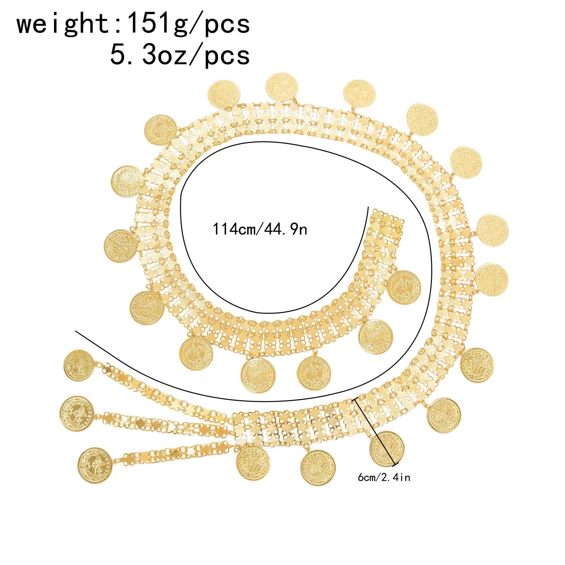 Golden Coins Tassel Body Chain Kurdish India Ethnic Dance Clothing Accessories Fashion Arab Turkey Afghan Bride Wedding Jewelry