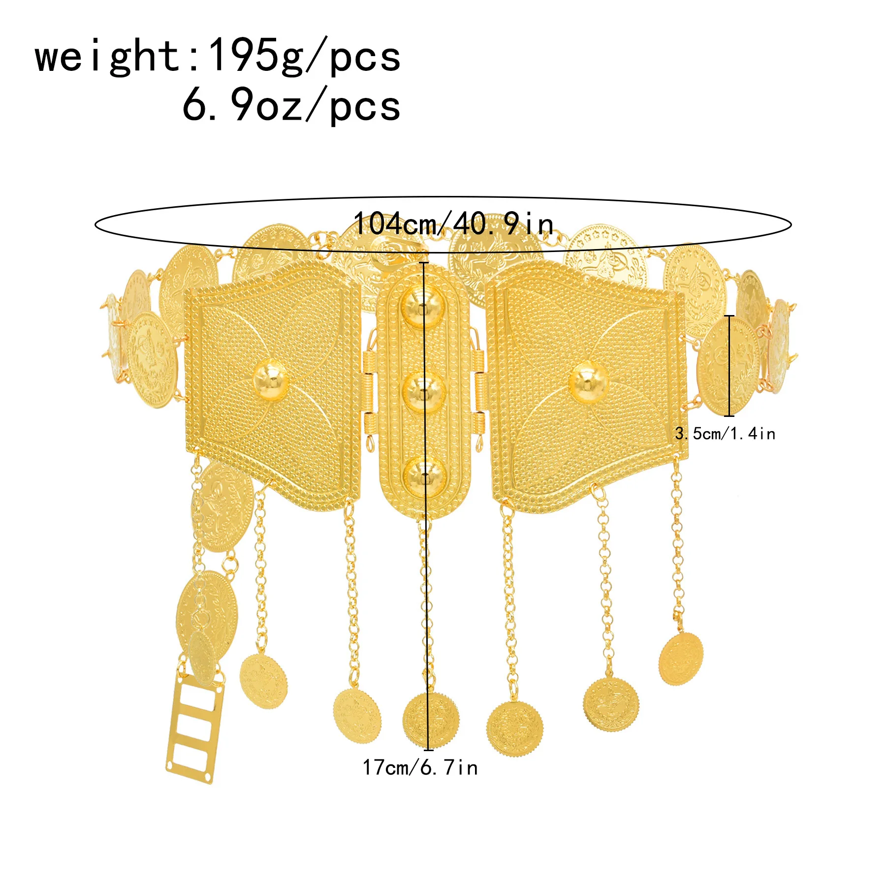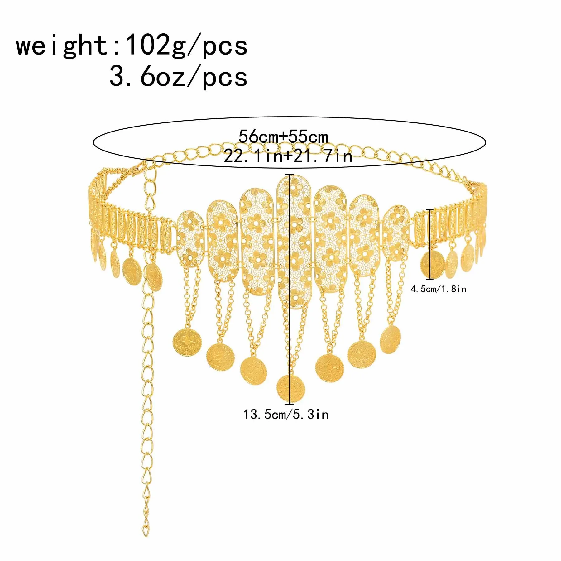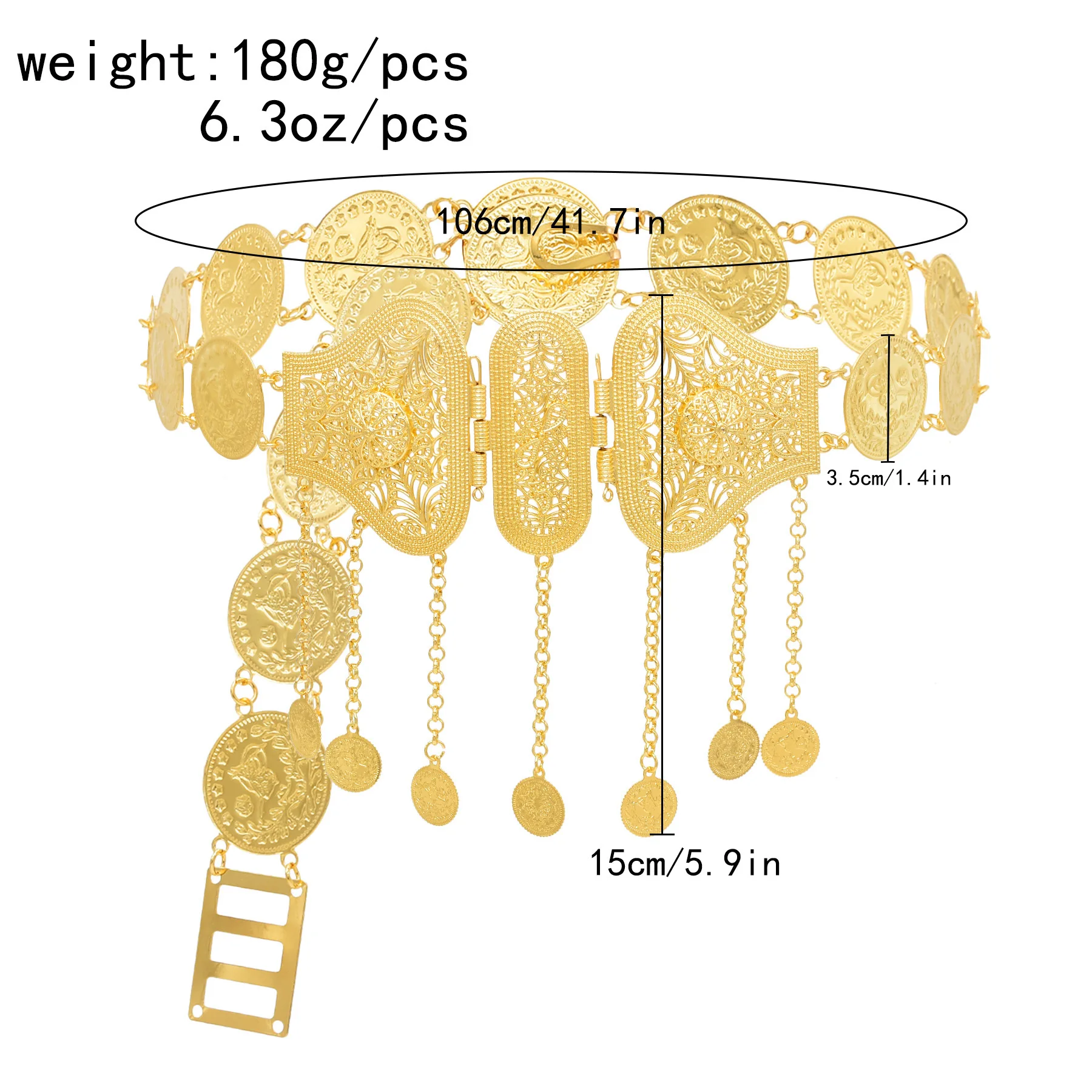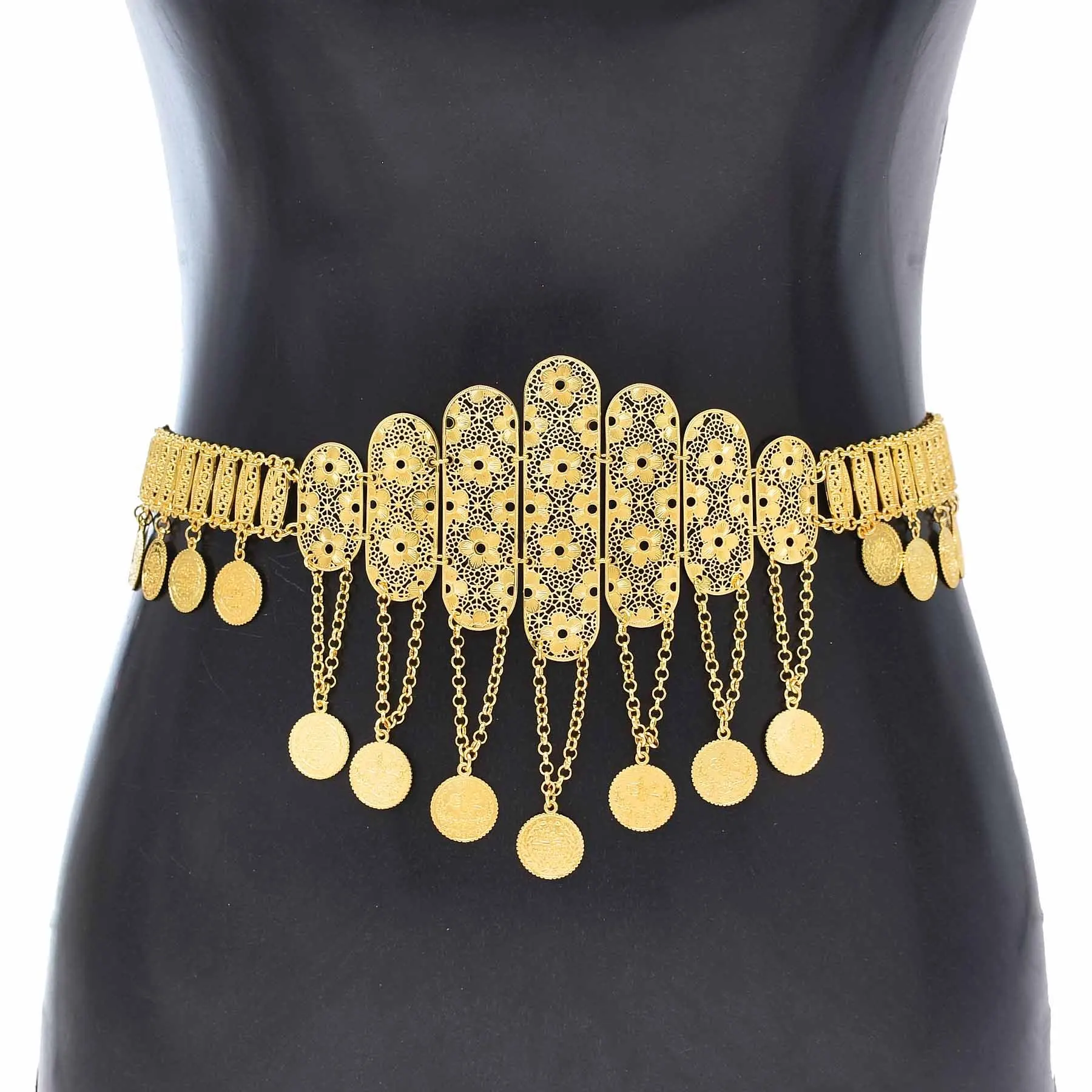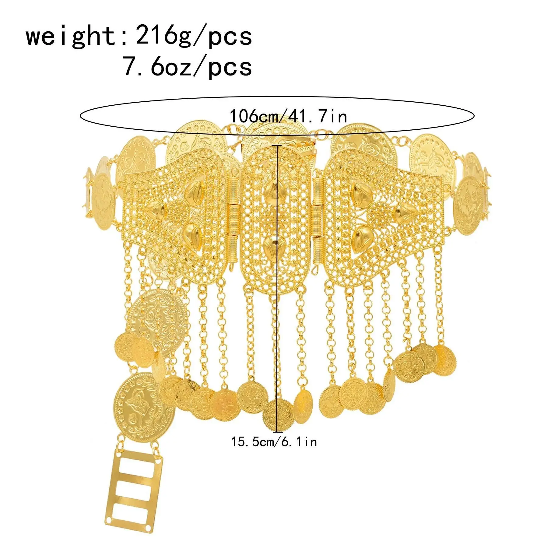 Golden Metal Coin Long Chain Belts for Women India Belly Dance Morocan Afghan Turkish Kurdistan National Dress Waistband Jewelry