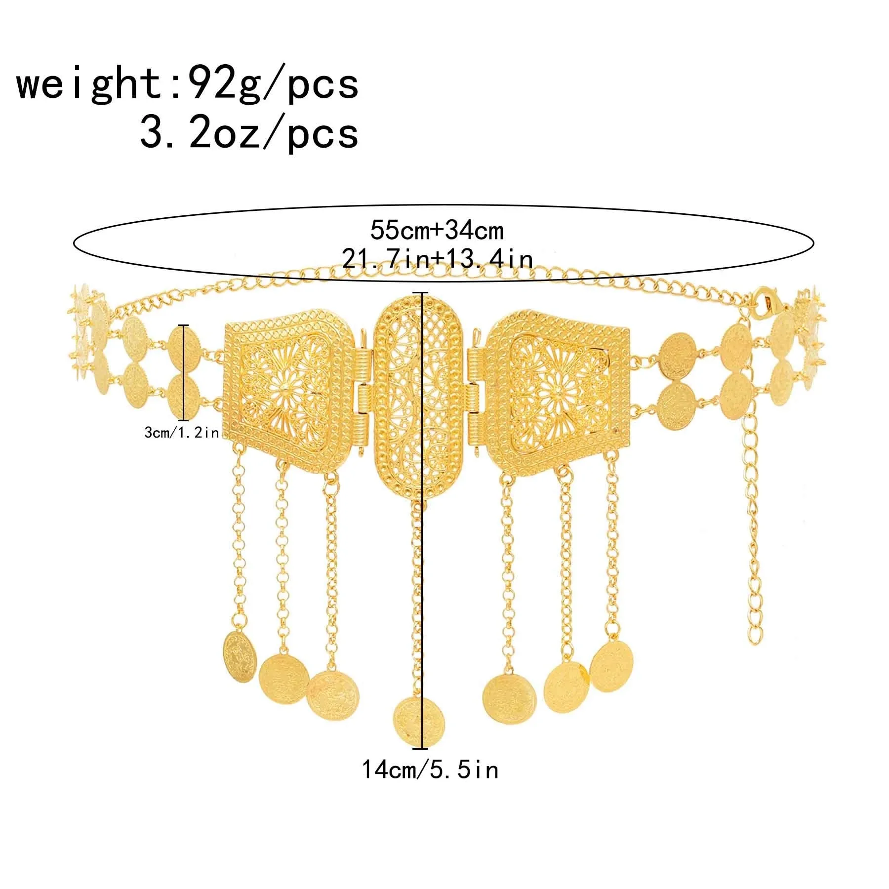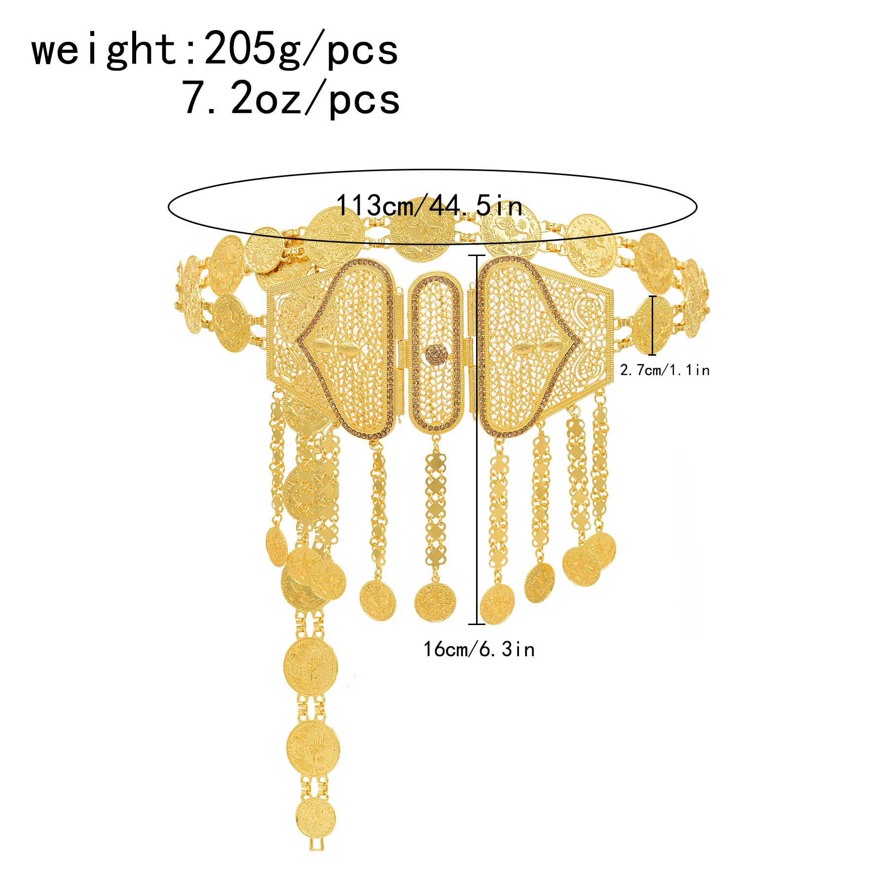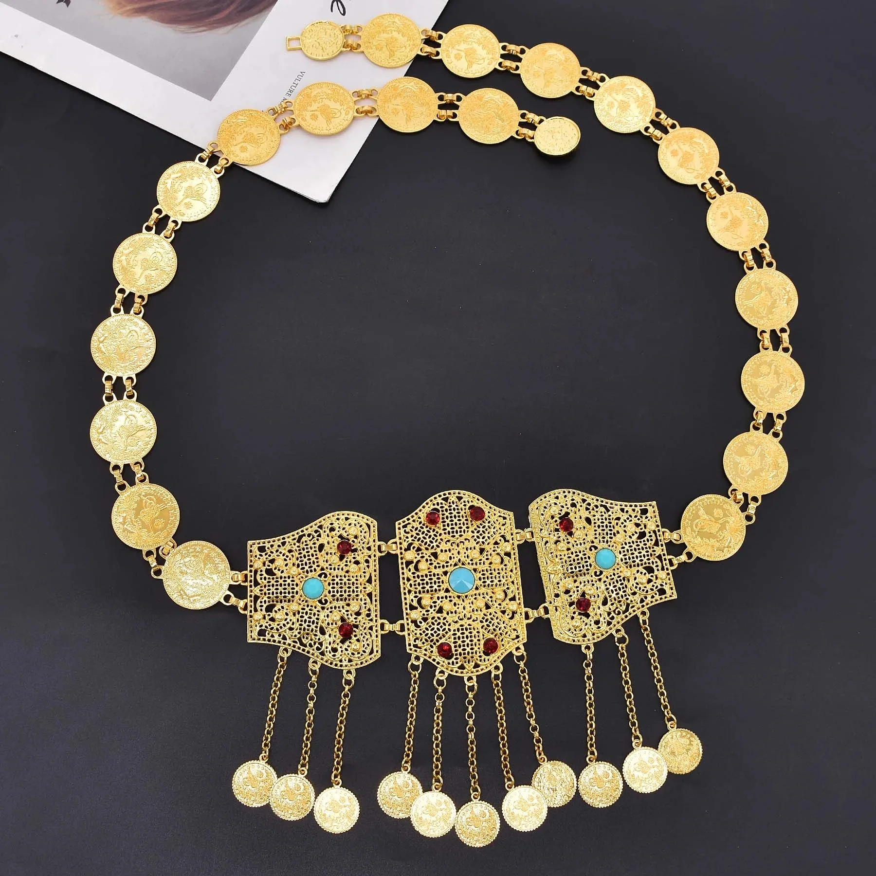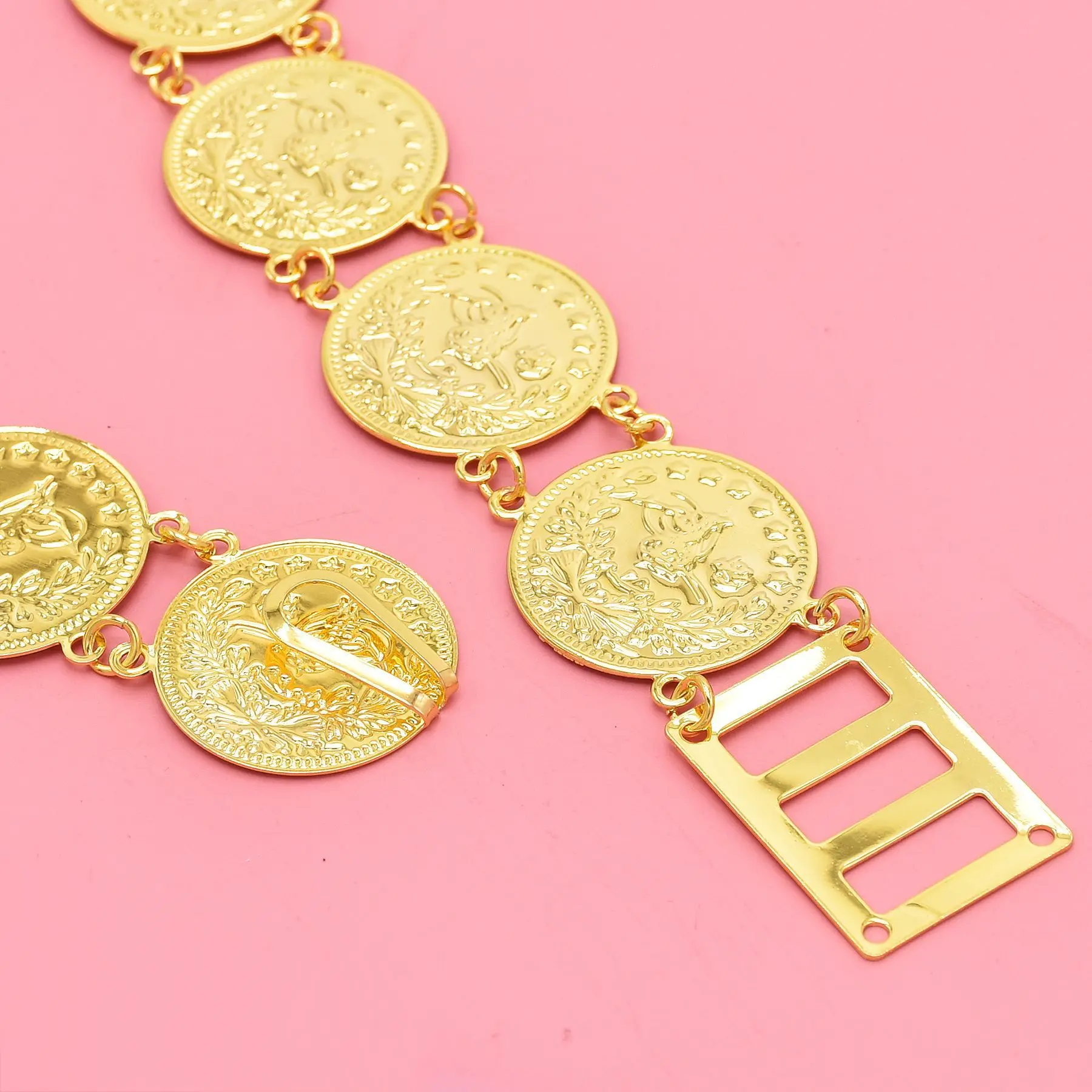 Golden Metal Coin Long Chain Belts for Women India Belly Dance Morocan Afghan Turkish Kurdistan National Dress Waistband Jewelry