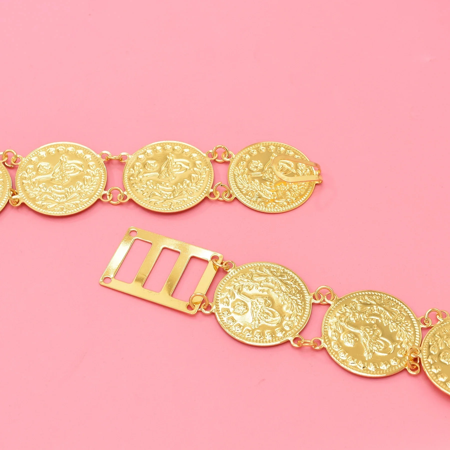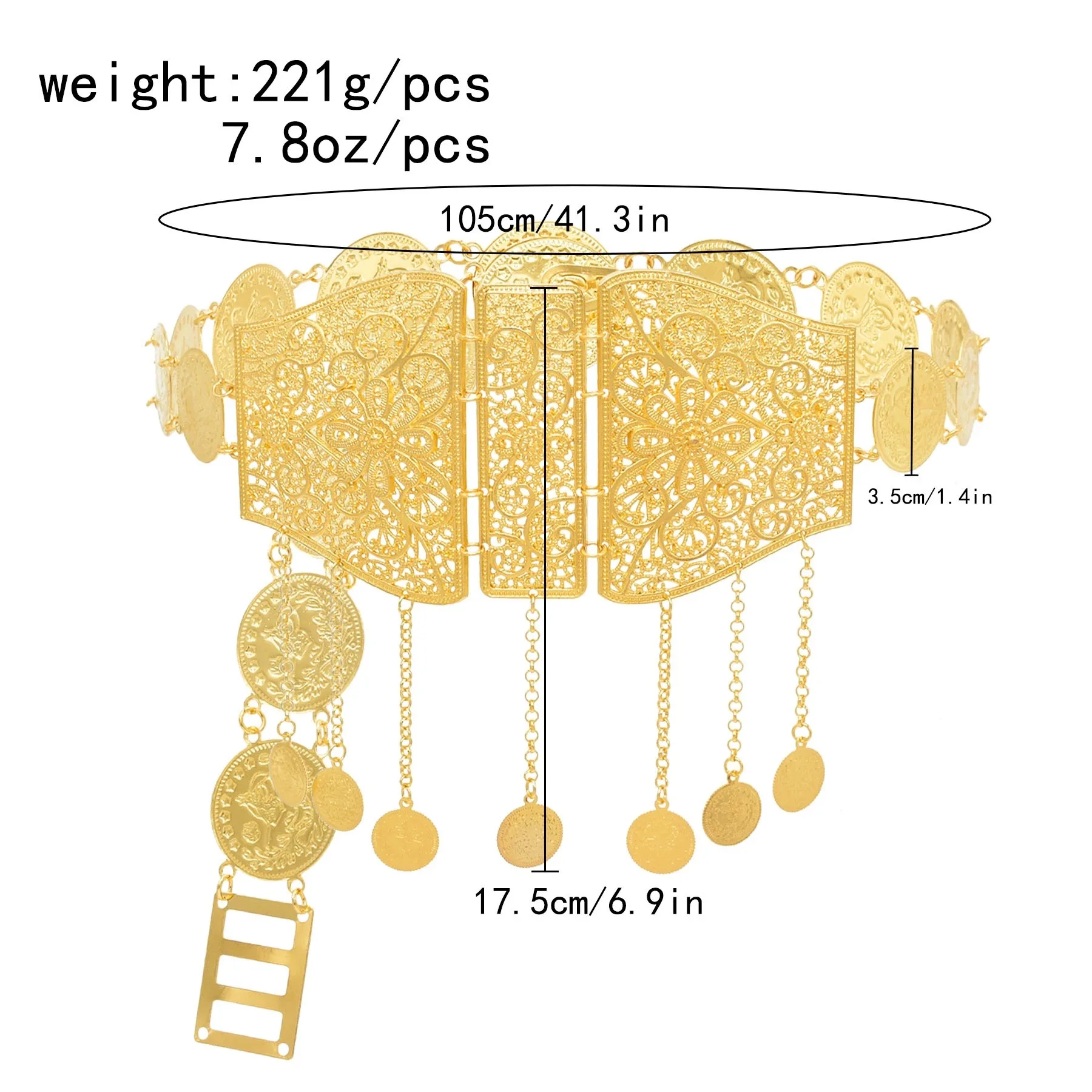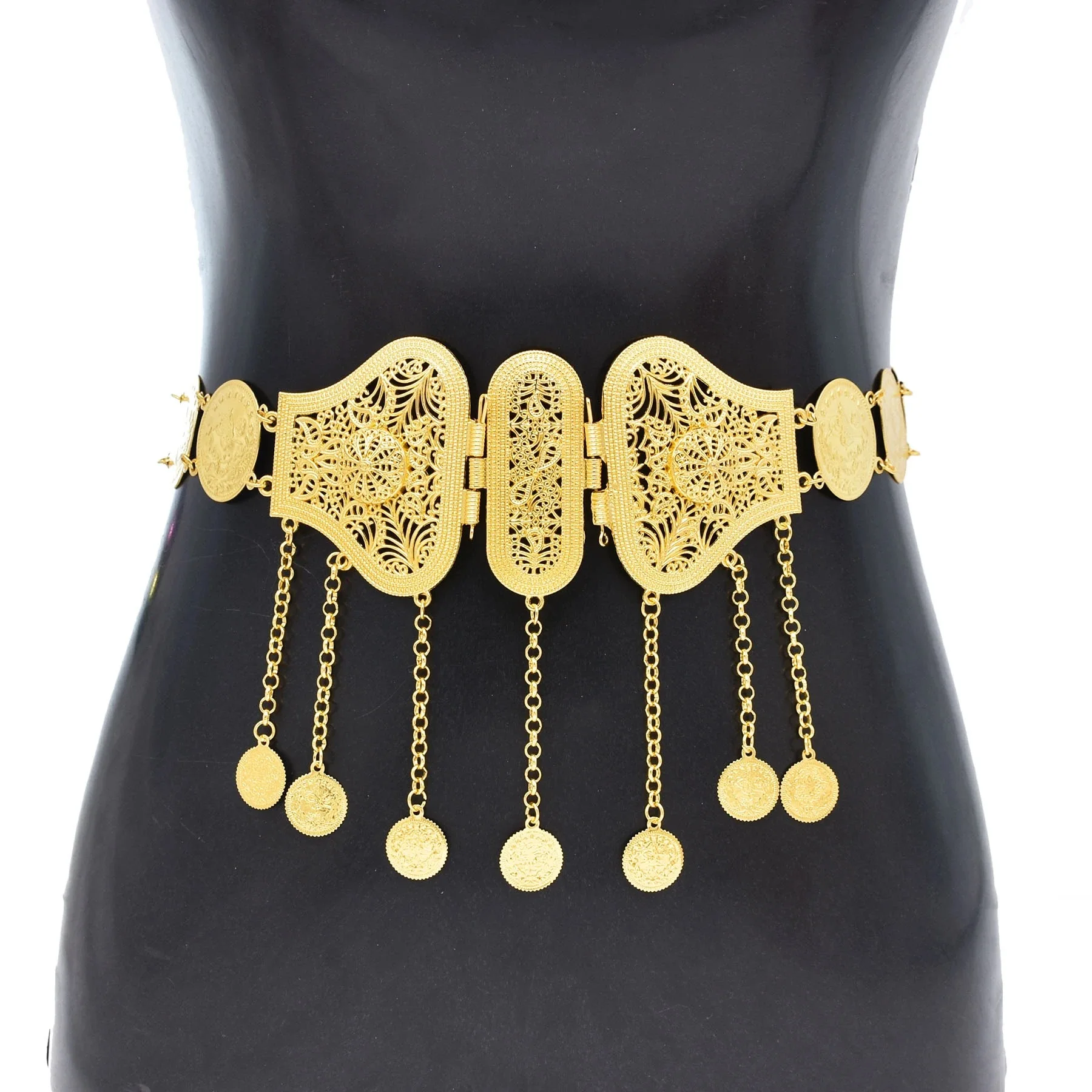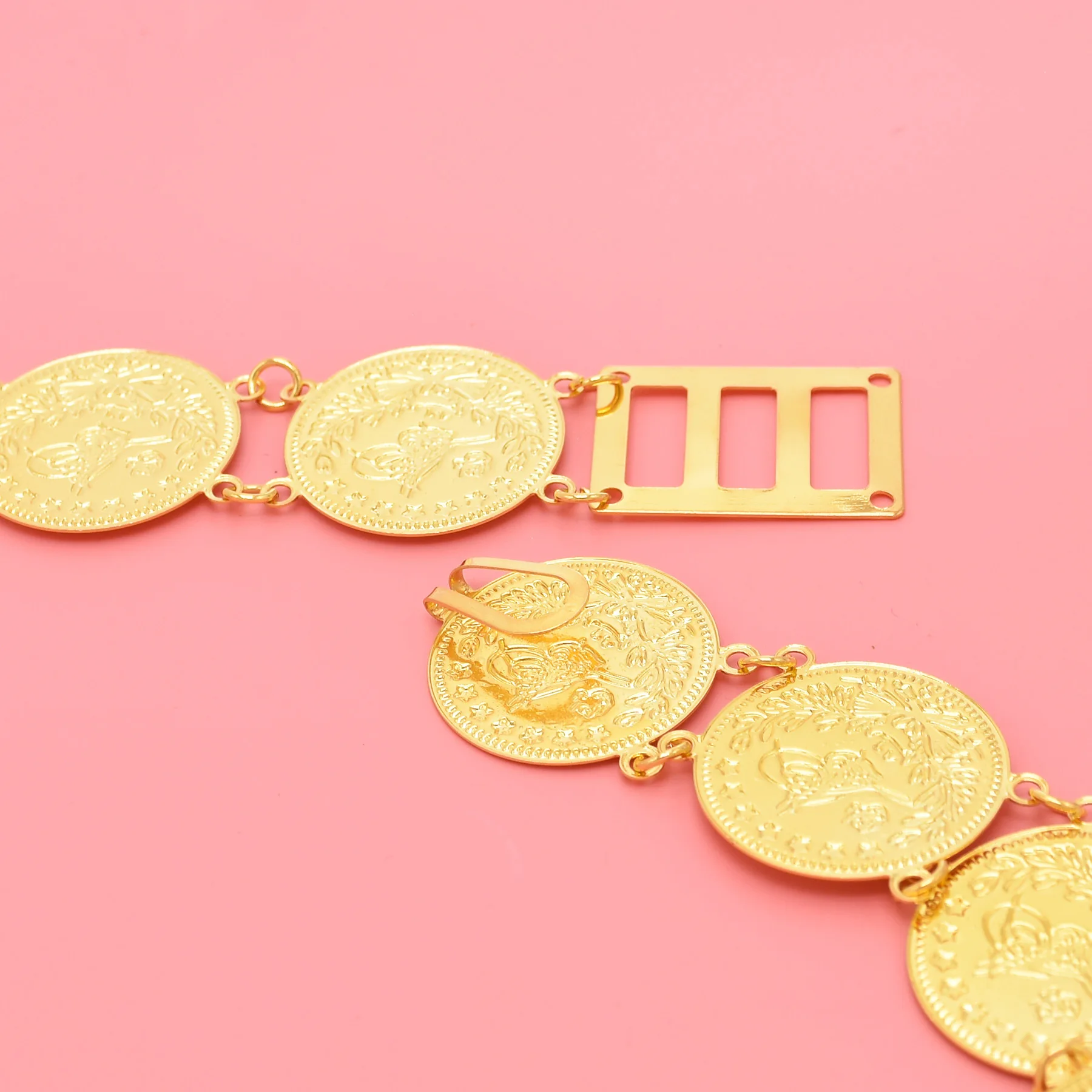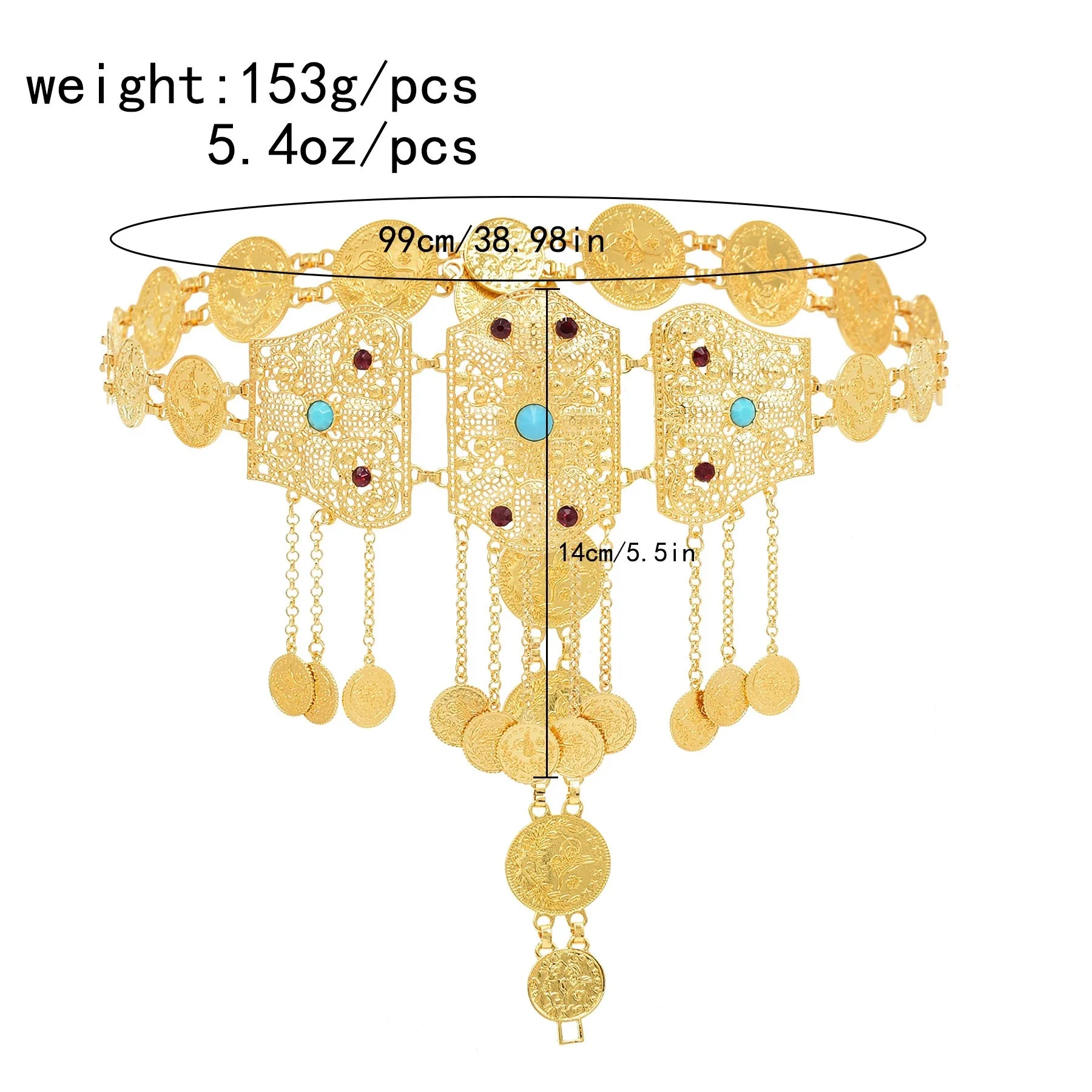 Golden Metal Coin Long Chain Belts for Women India Belly Dance Morocan Afghan Turkish Kurdistan National Dress Waistband Jewelry
