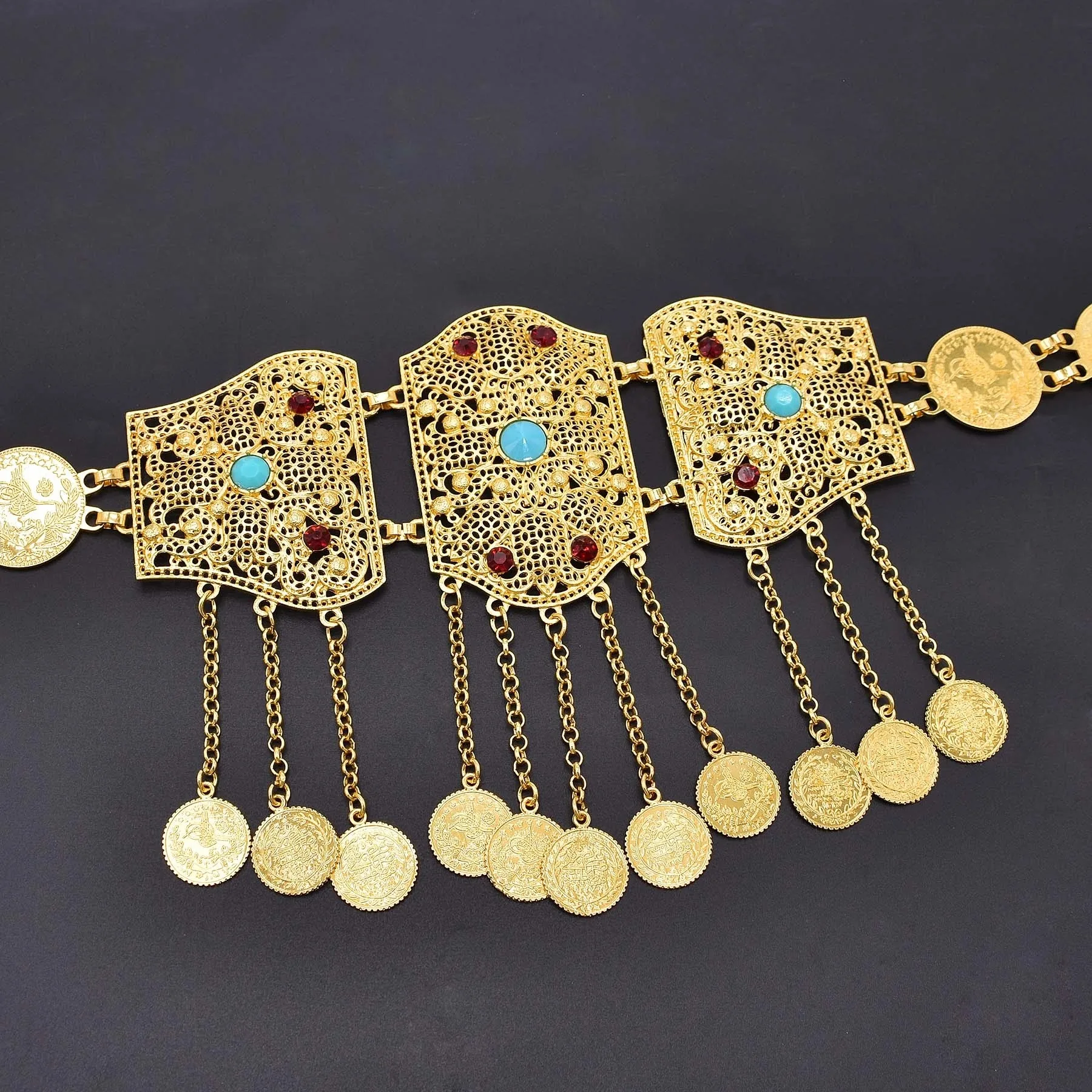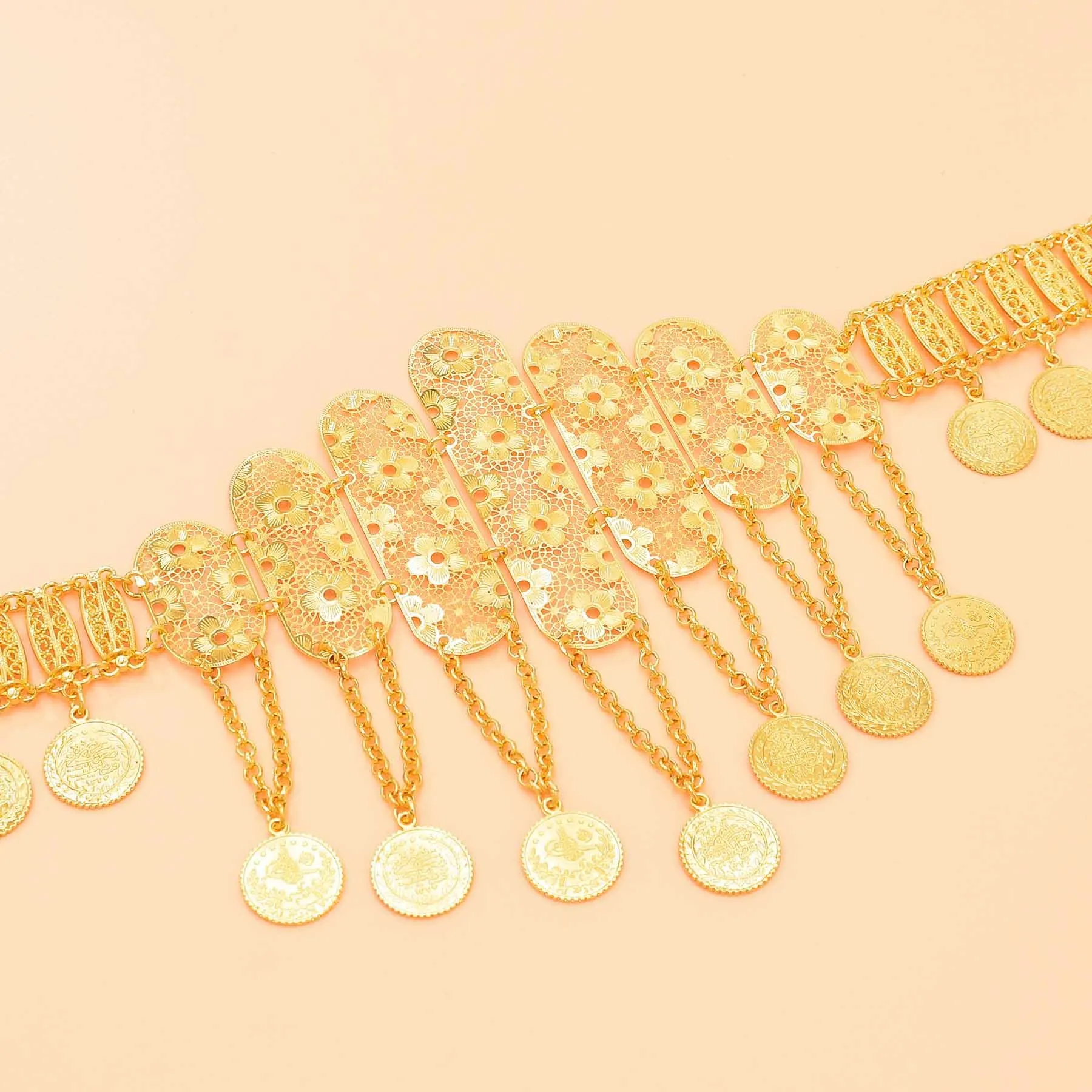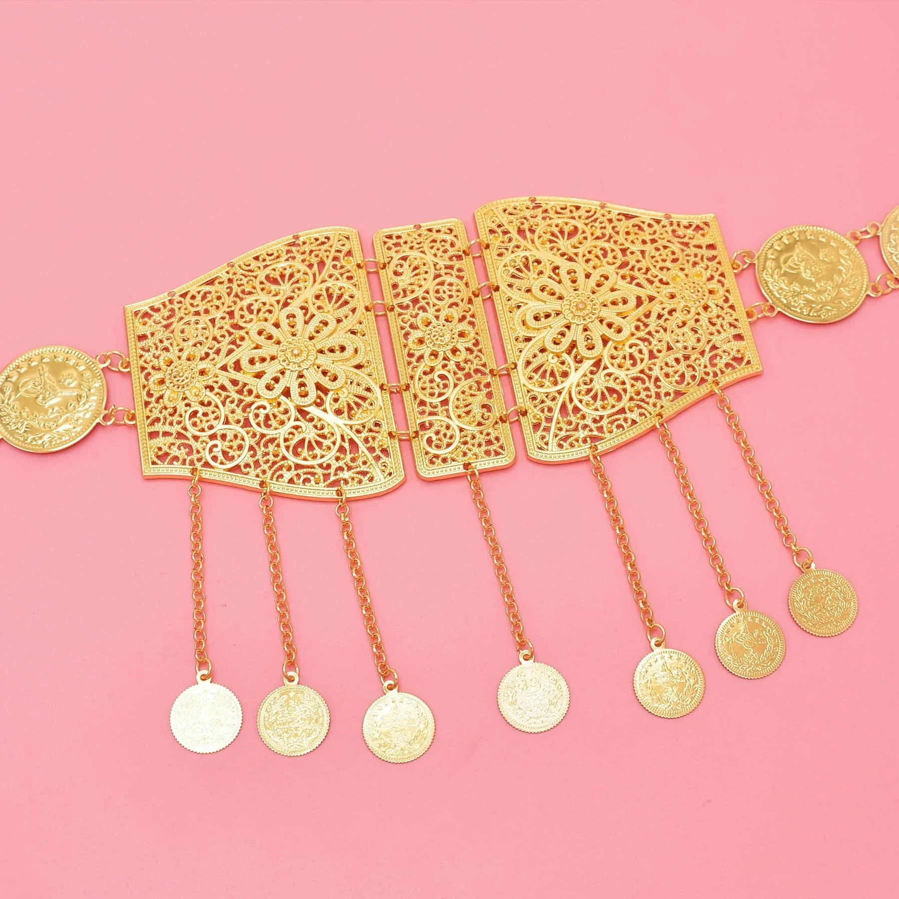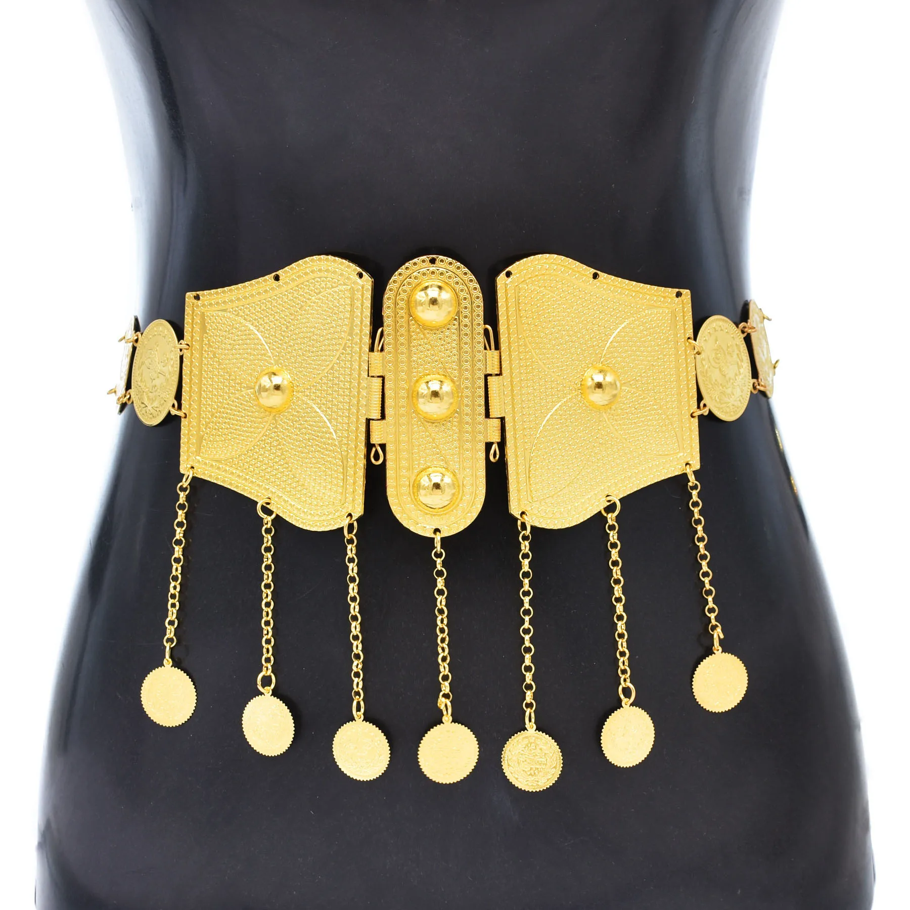 Golden Metal Coin Long Chain Belts for Women India Belly Dance Morocan Afghan Turkish Kurdistan National Dress Waistband Jewelry