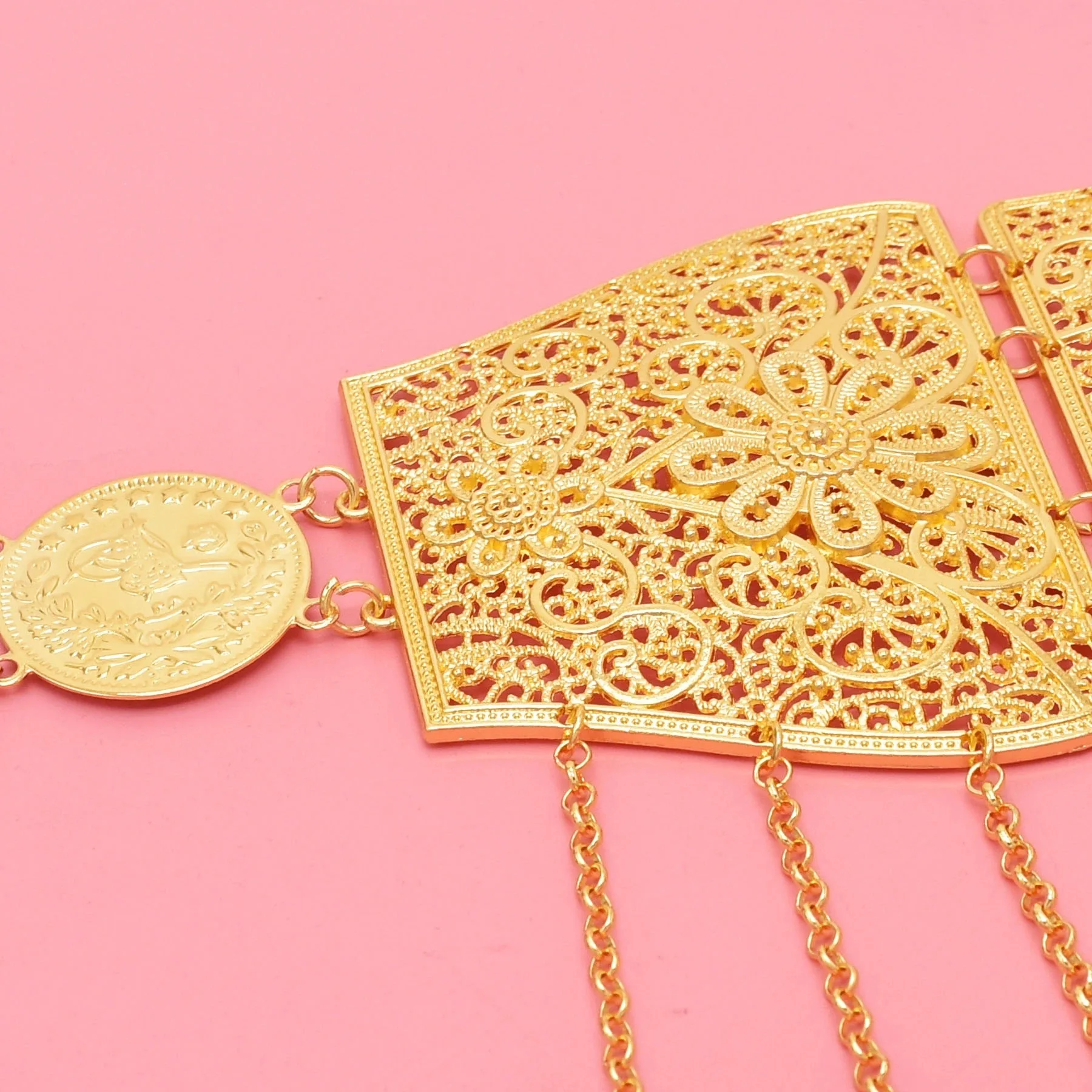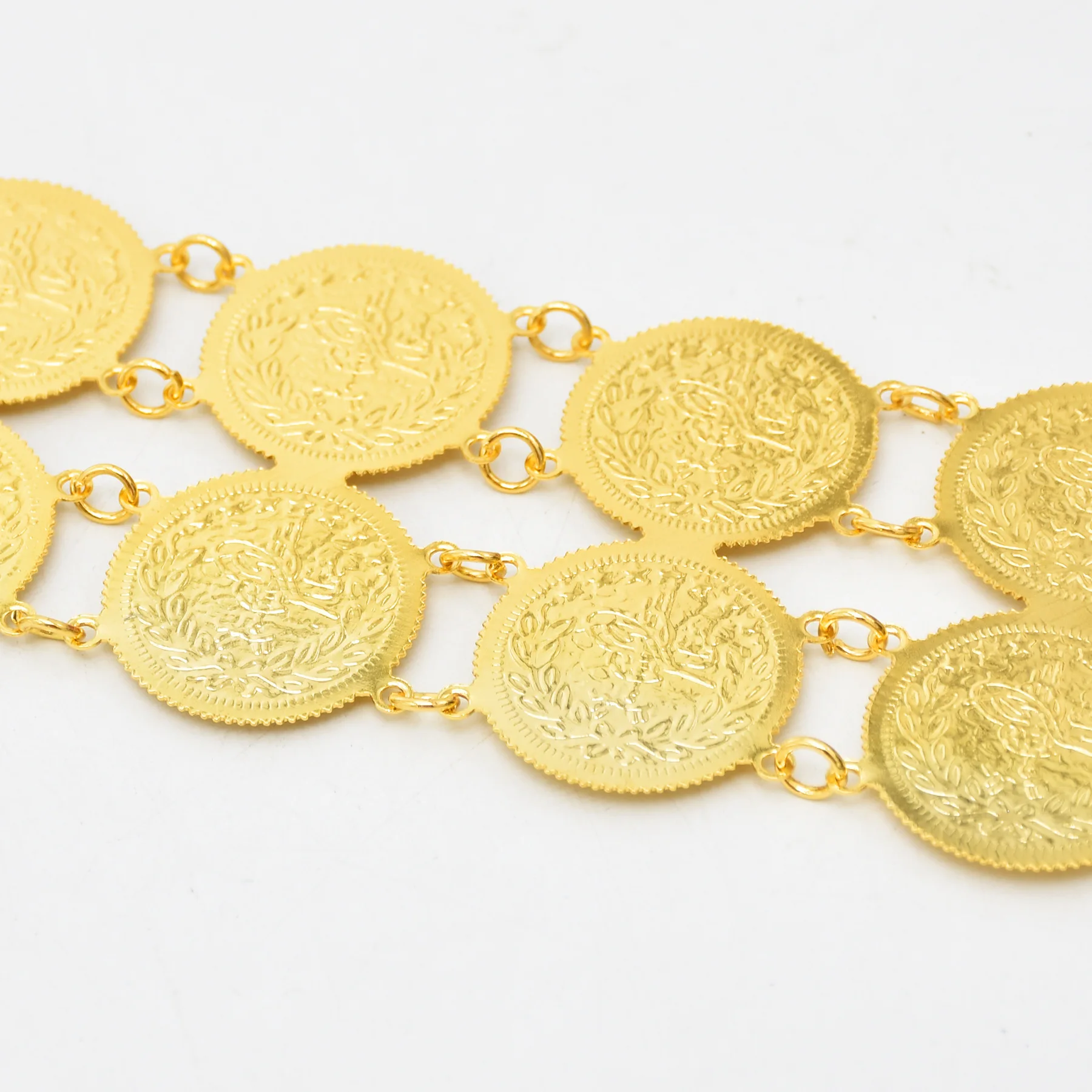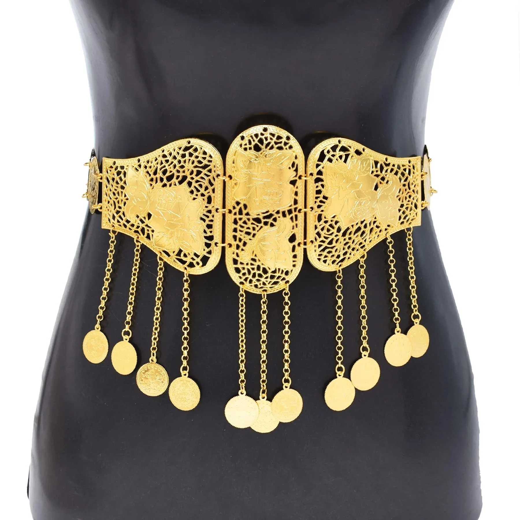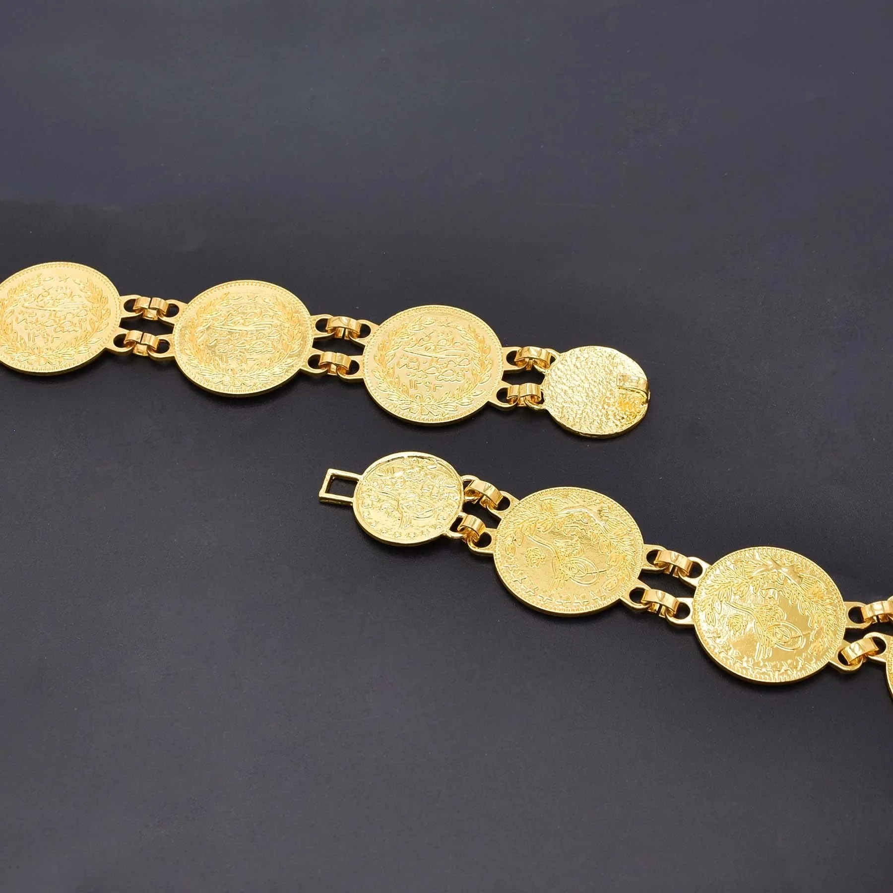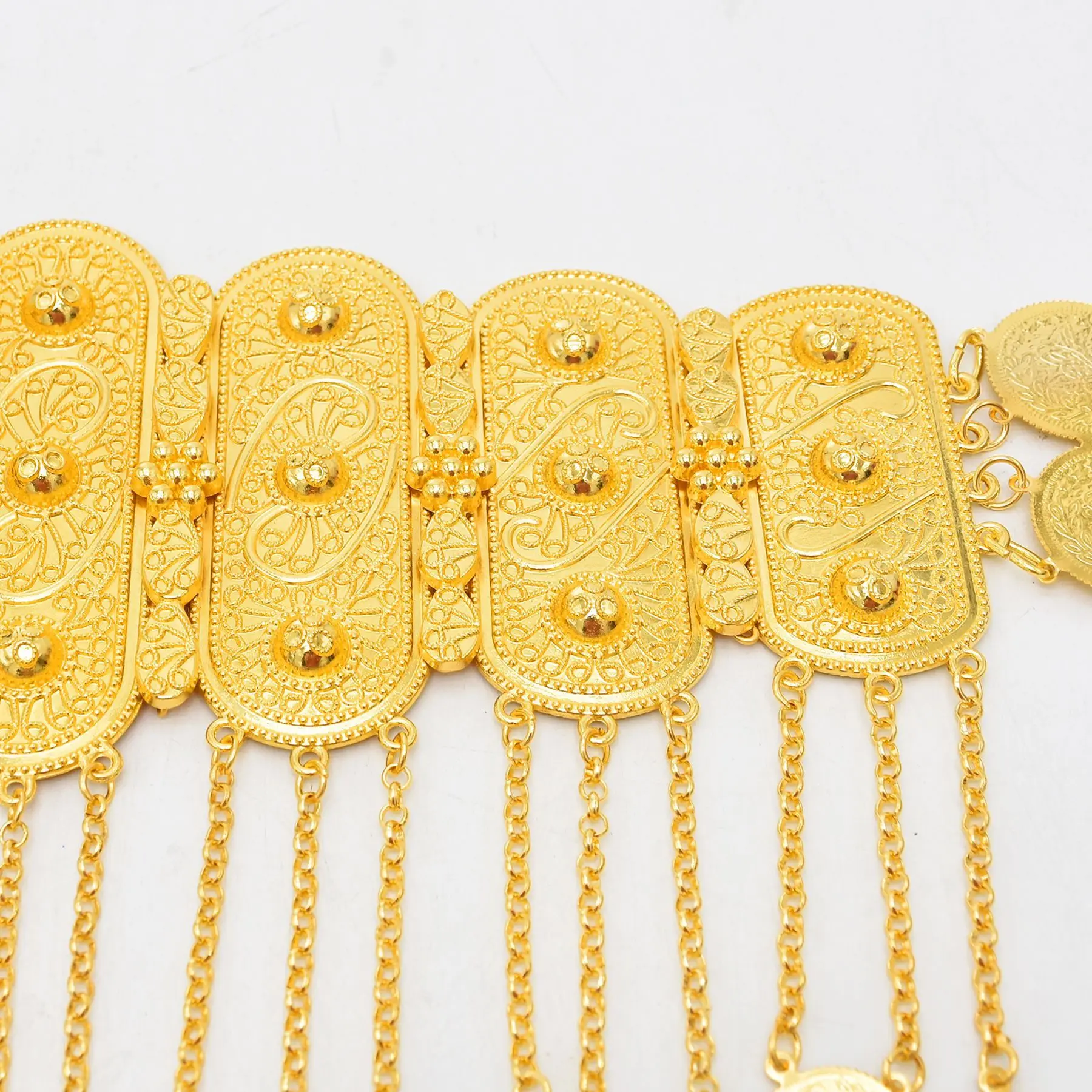 Golden Metal Coin Long Chain Belts for Women India Belly Dance Morocan Afghan Turkish Kurdistan National Dress Waistband Jewelry