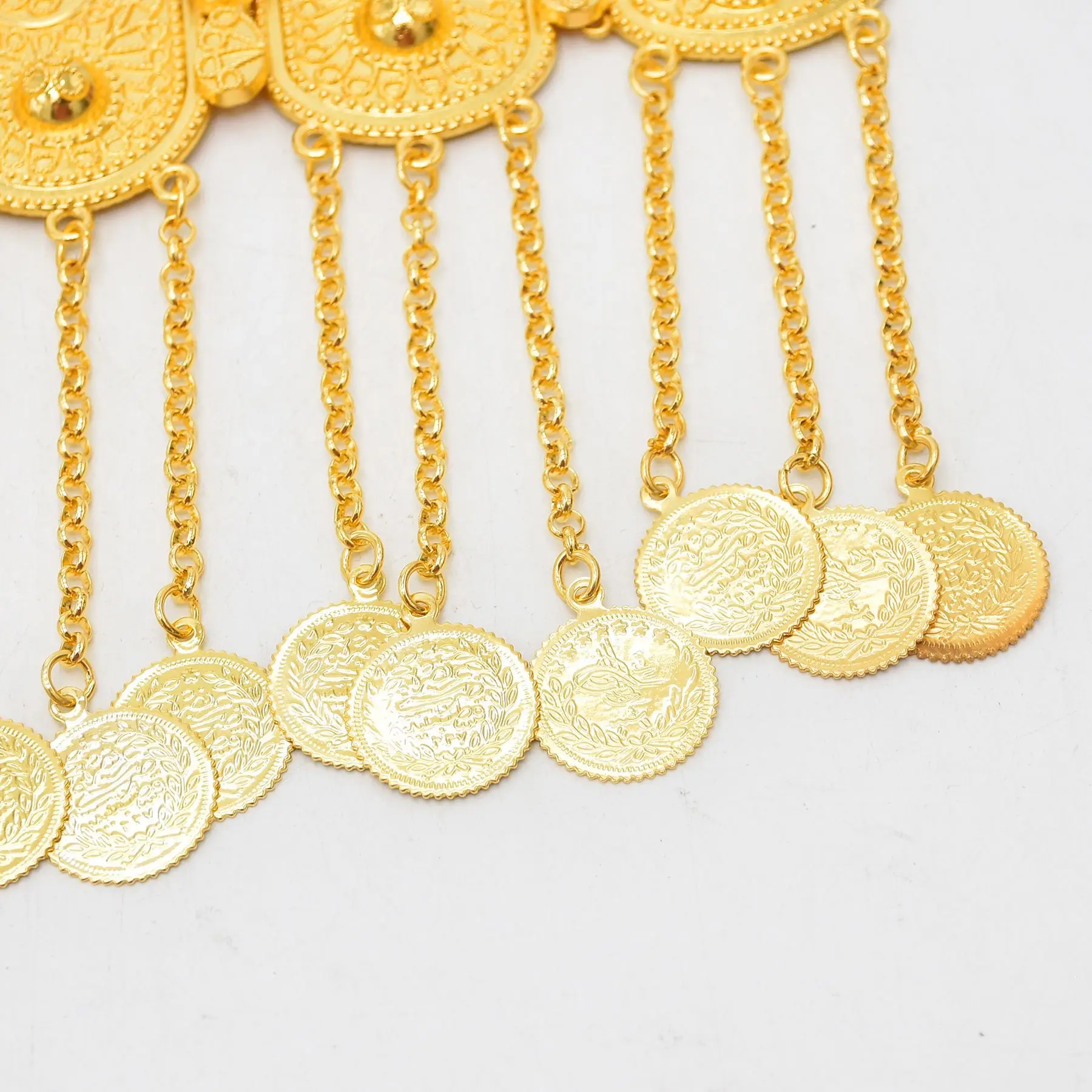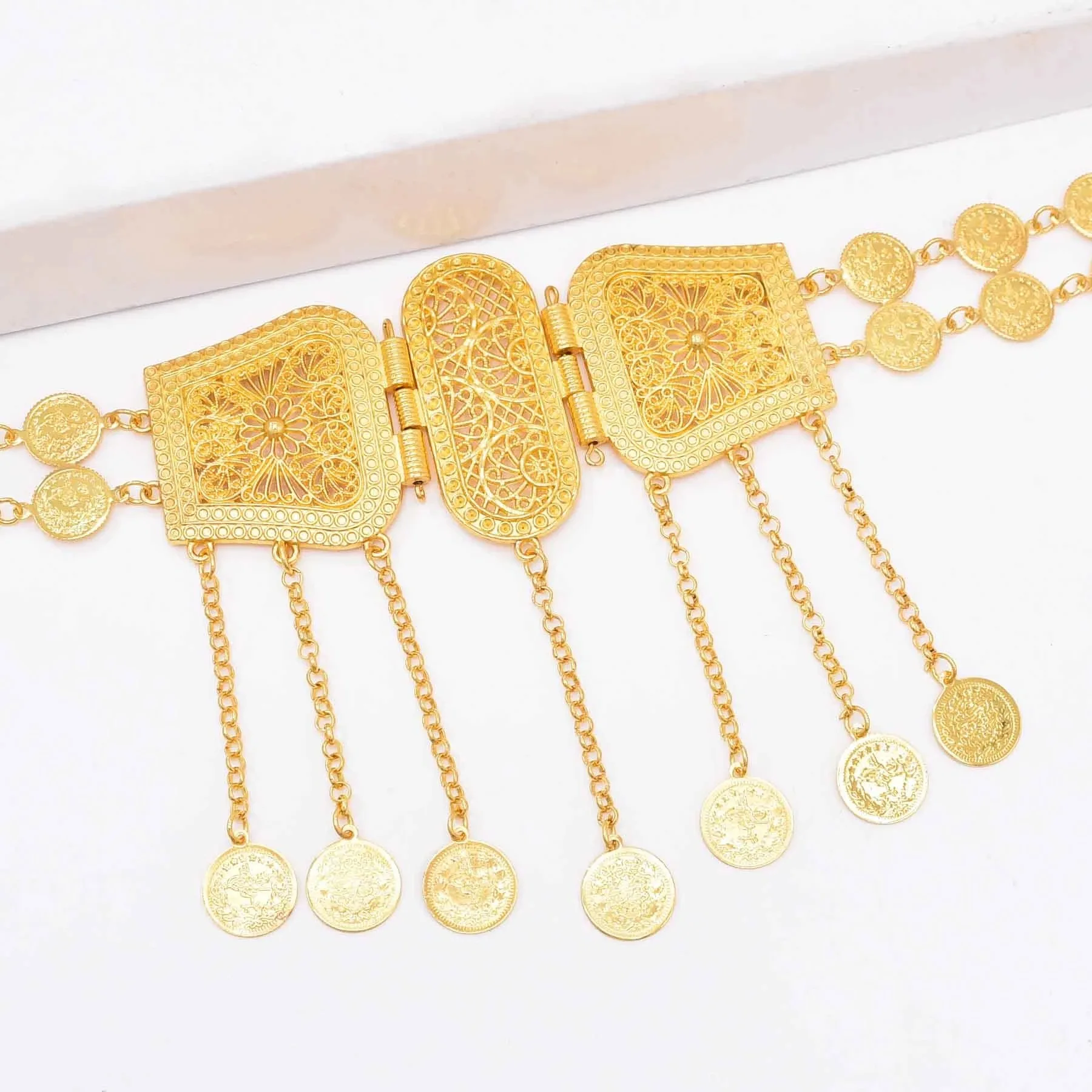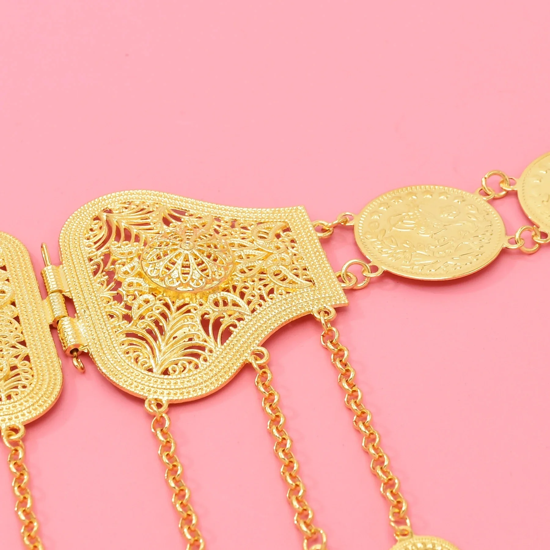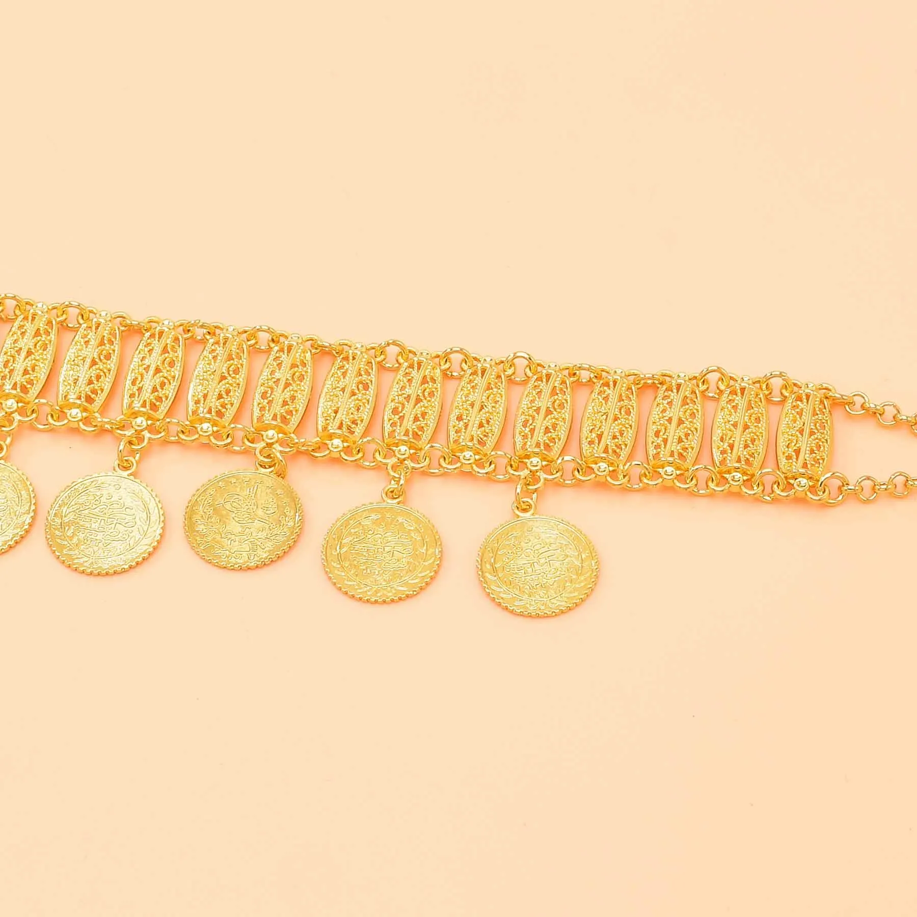 Golden Metal Coin Long Chain Belts for Women India Belly Dance Morocan Afghan Turkish Kurdistan National Dress Waistband Jewelry