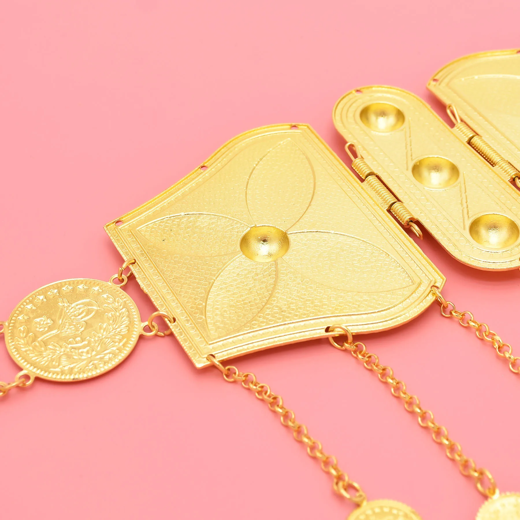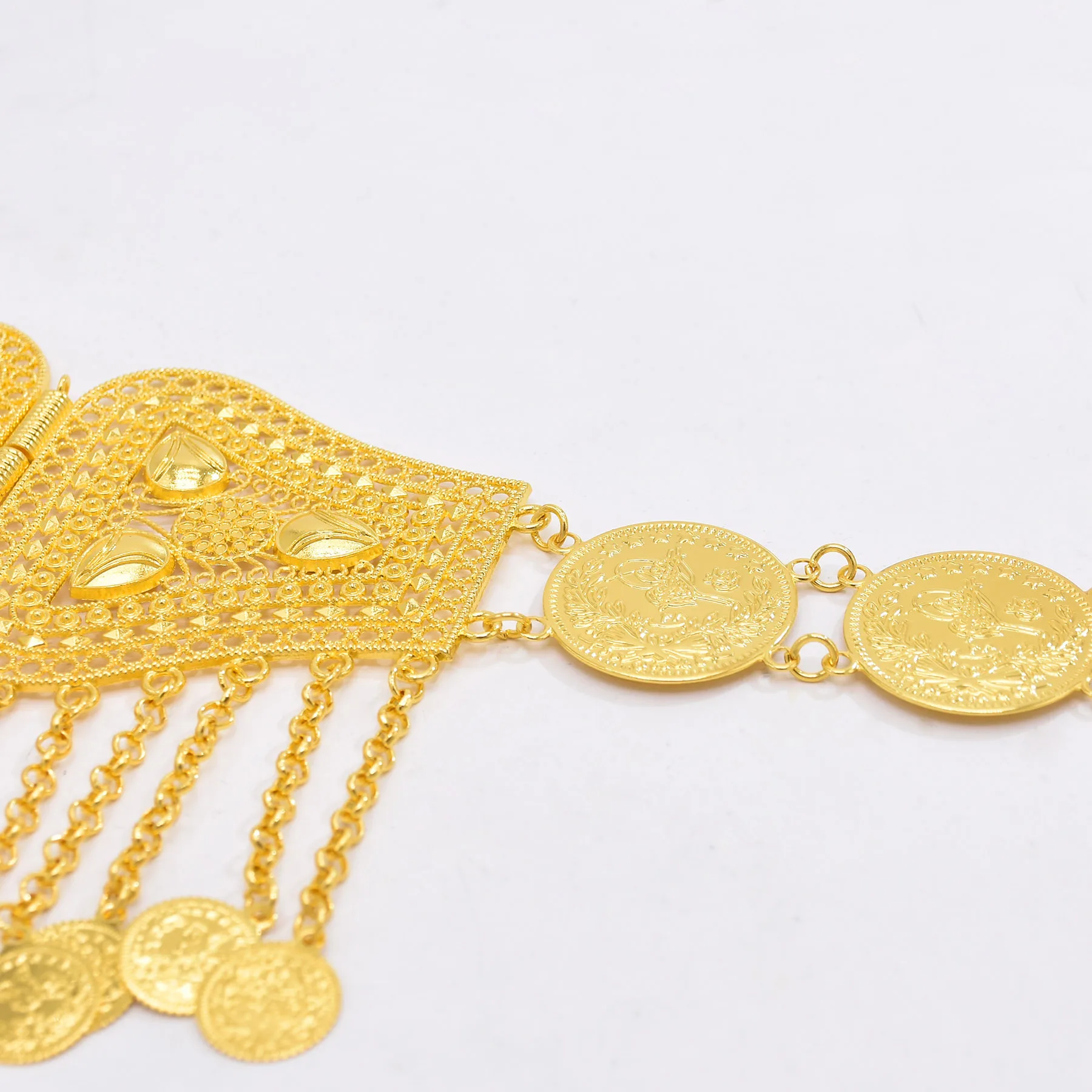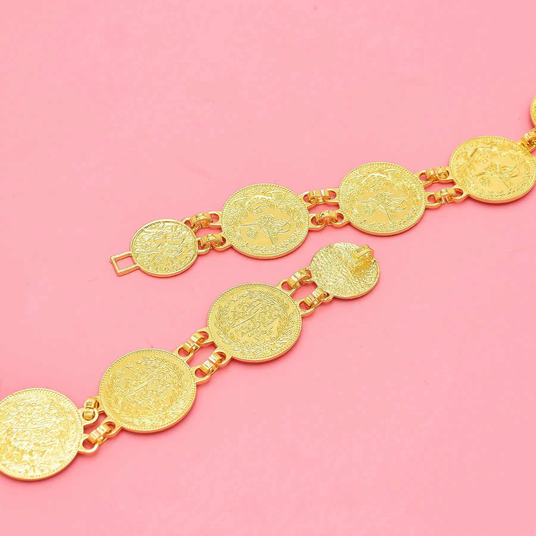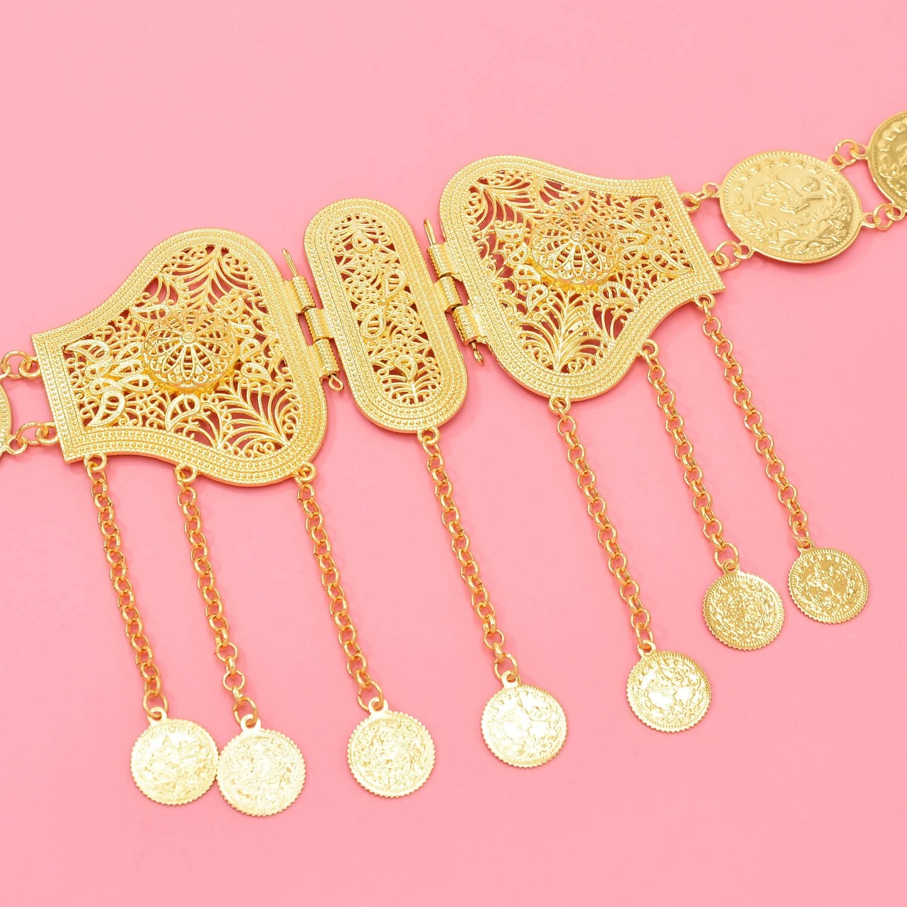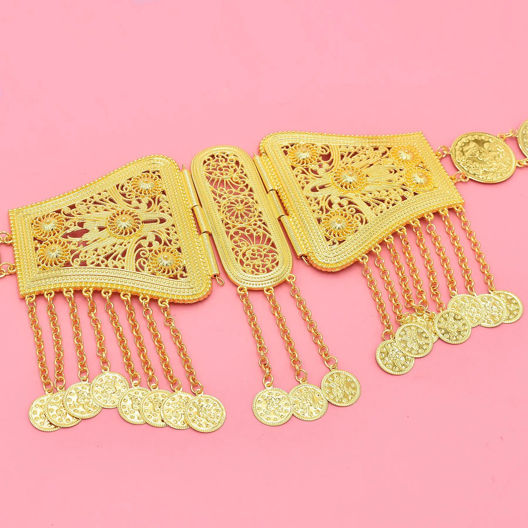 Golden Metal Coin Long Chain Belts for Women India Belly Dance Morocan Afghan Turkish Kurdistan National Dress Waistband Jewelry