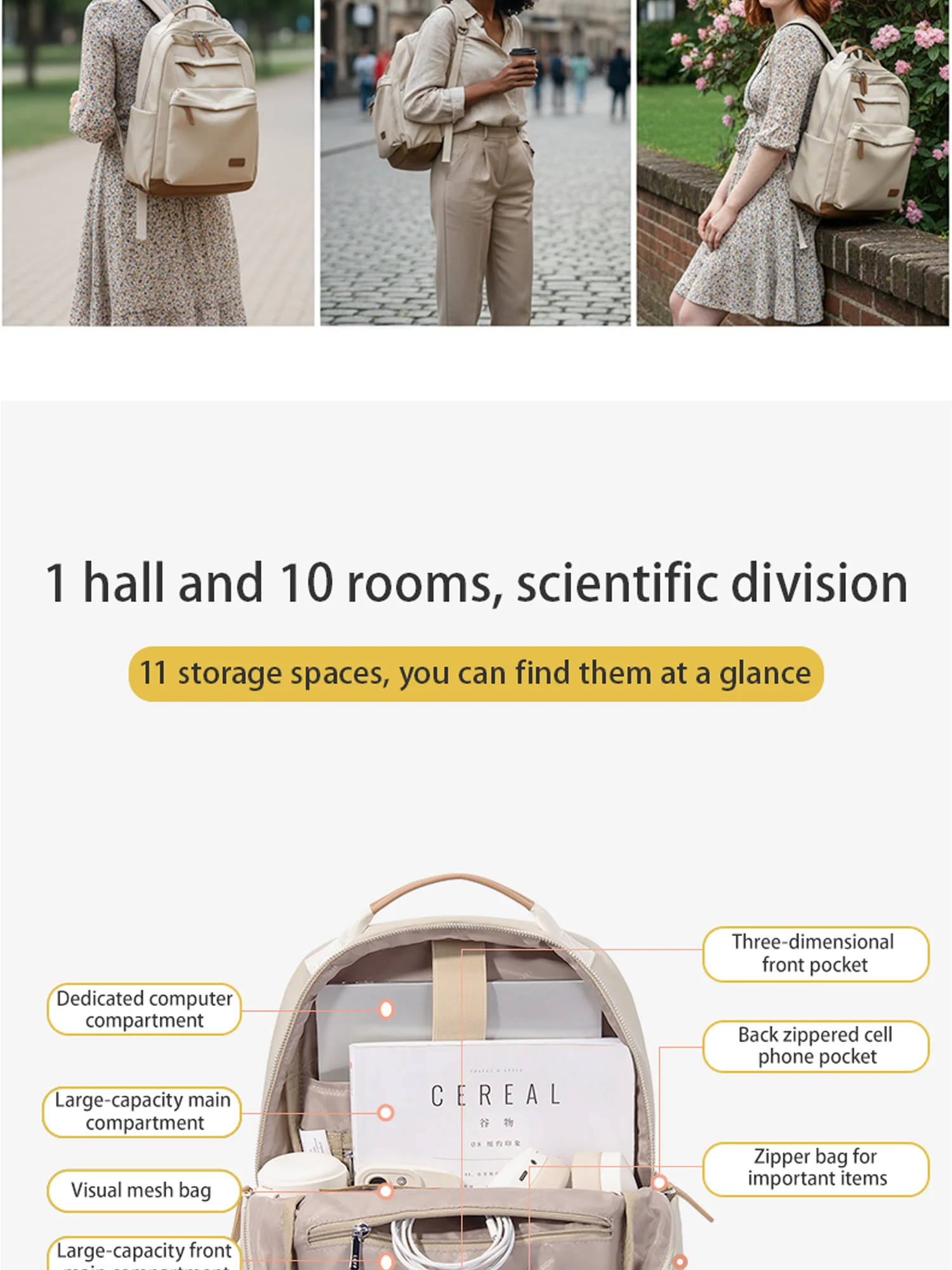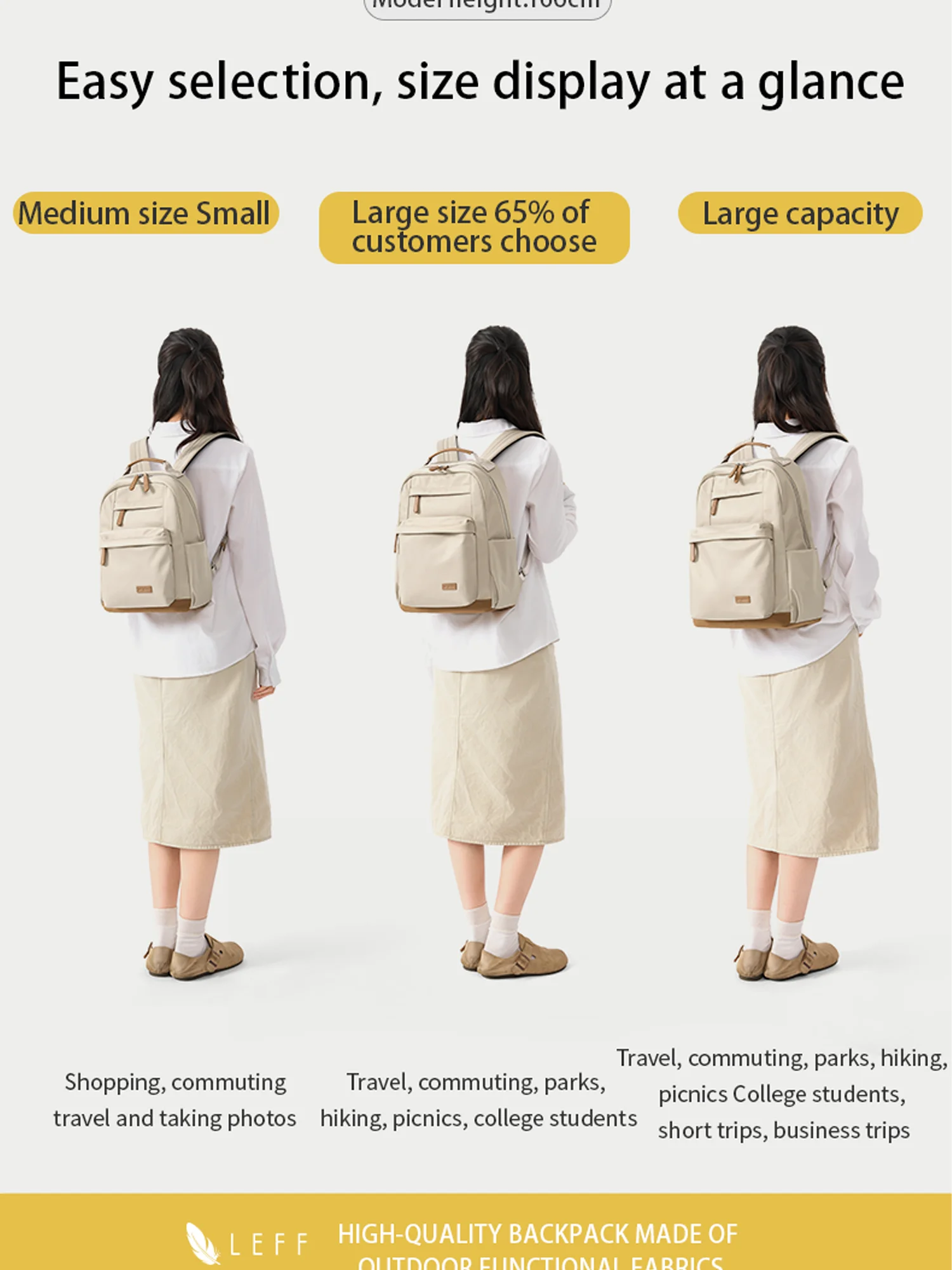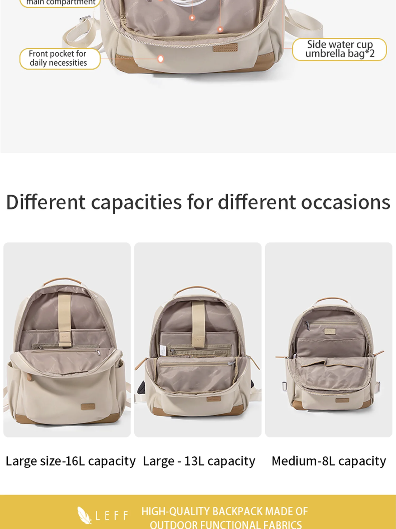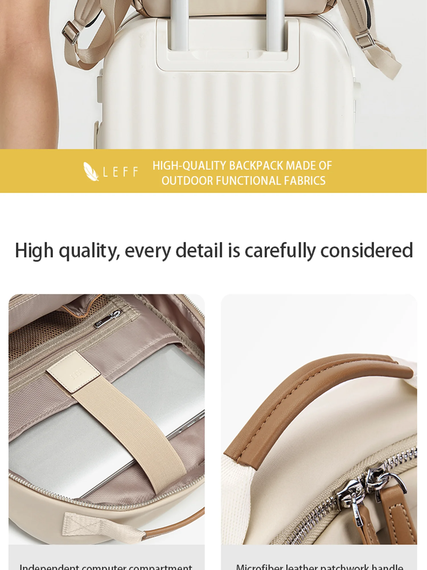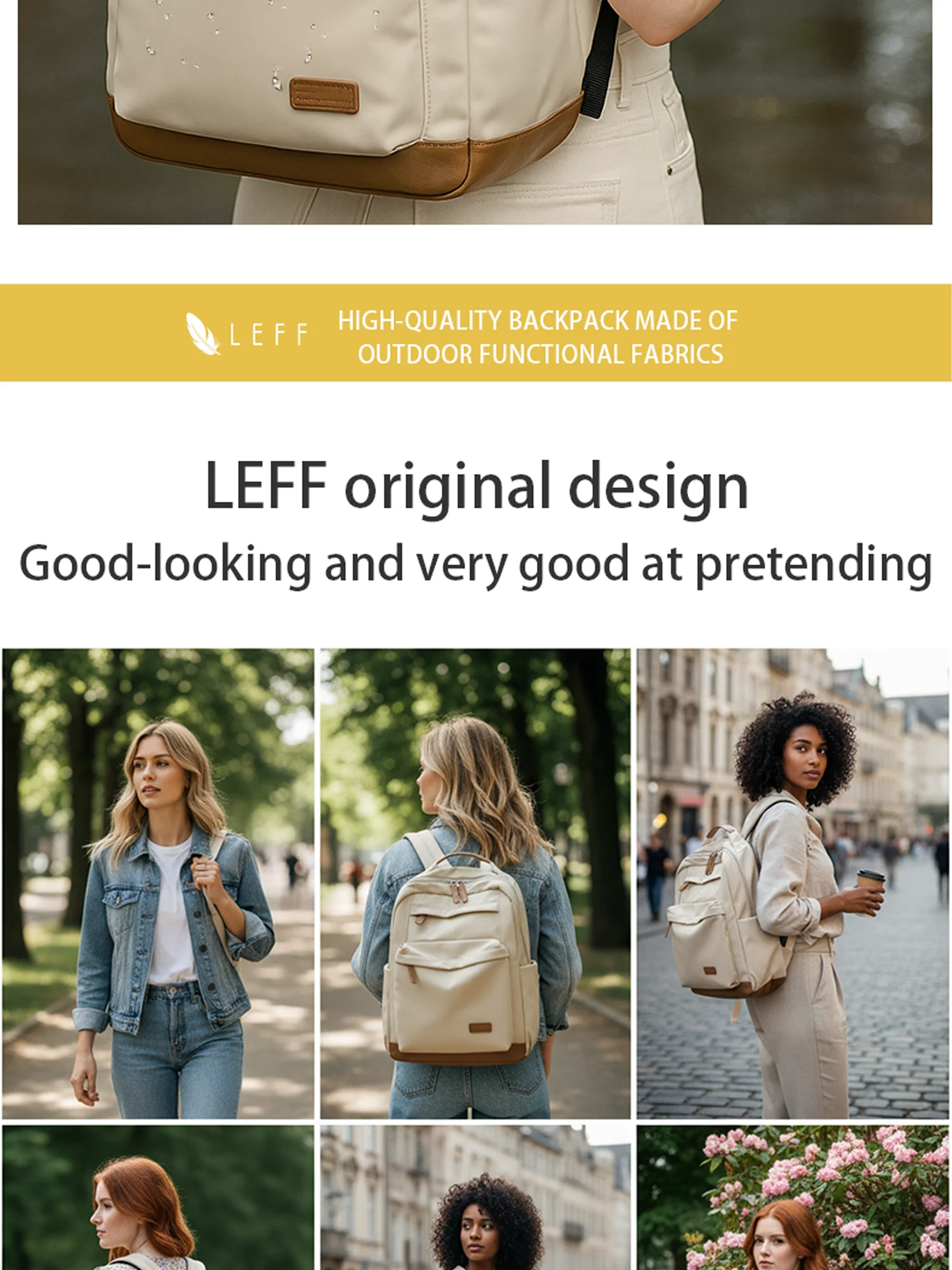 LEFF Women Backpack High Quality Large Capacity Laptop Backpacks Trendy Female Commuting Backpack Waterproof Outdoor Travel Bags