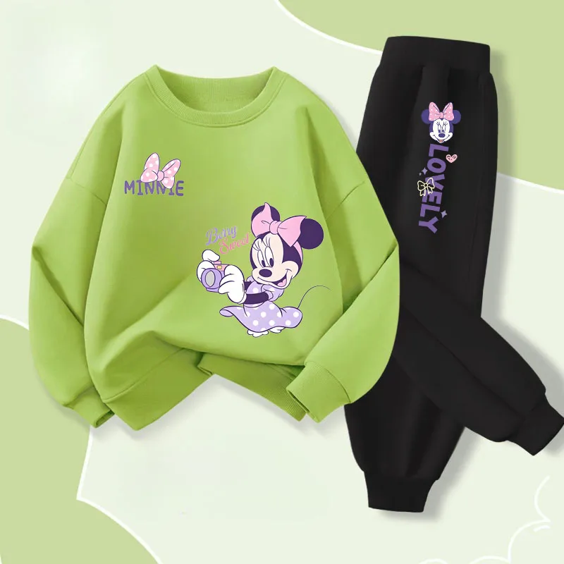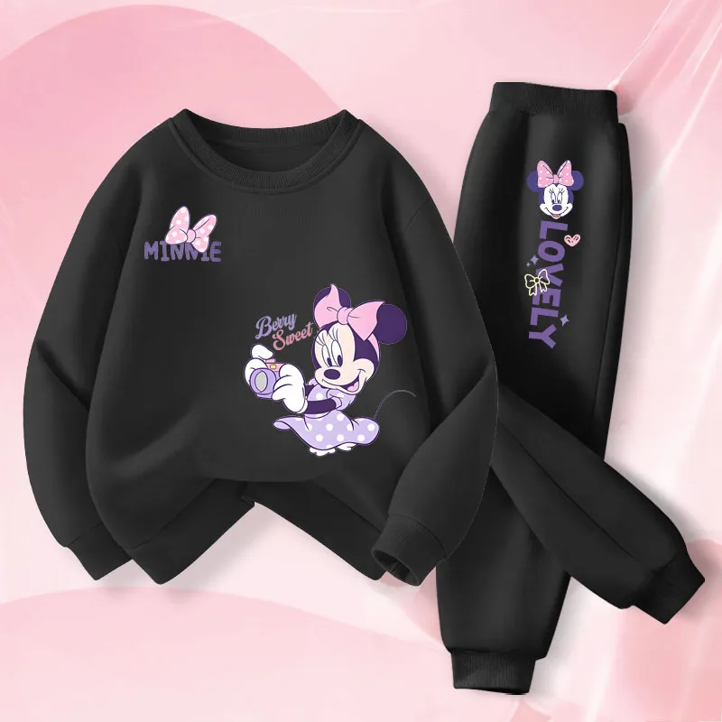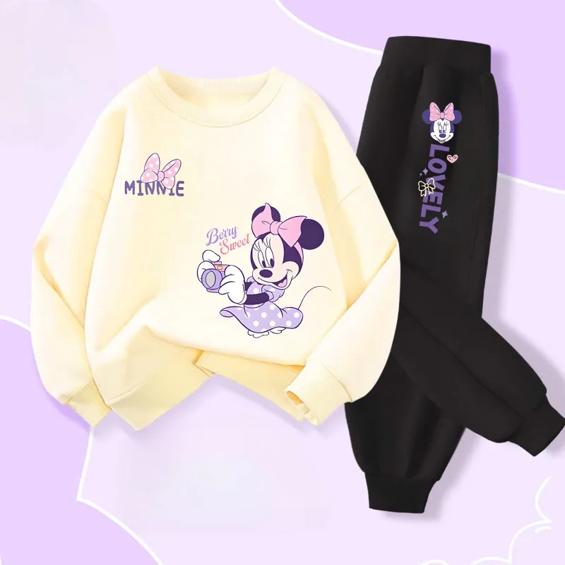 Long Sleeve Children's Clothing Sets Spring New Disney Girls' Pullover Long Pant Two Piece Suit Minnie Printed Kids Tracksuit