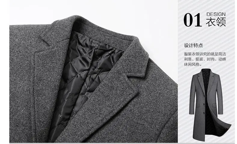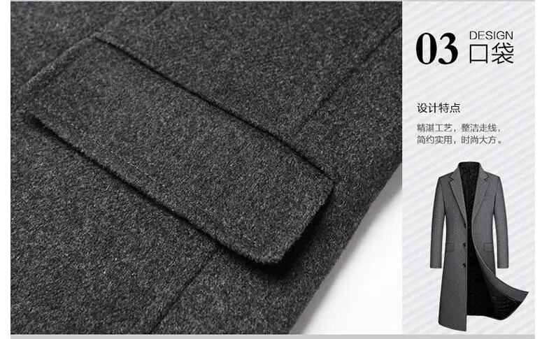 Men X-Long Woolen Blends Overcoats Cashmere Trench Coats Long Jackets New Winter Male Business Casual Wool Trench Coats Size XXL