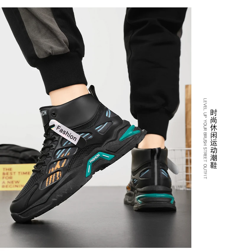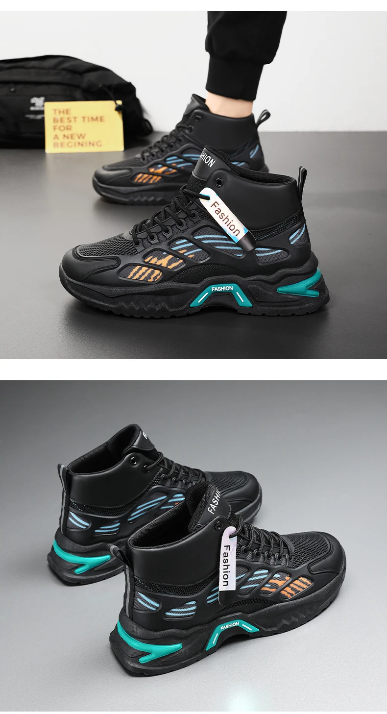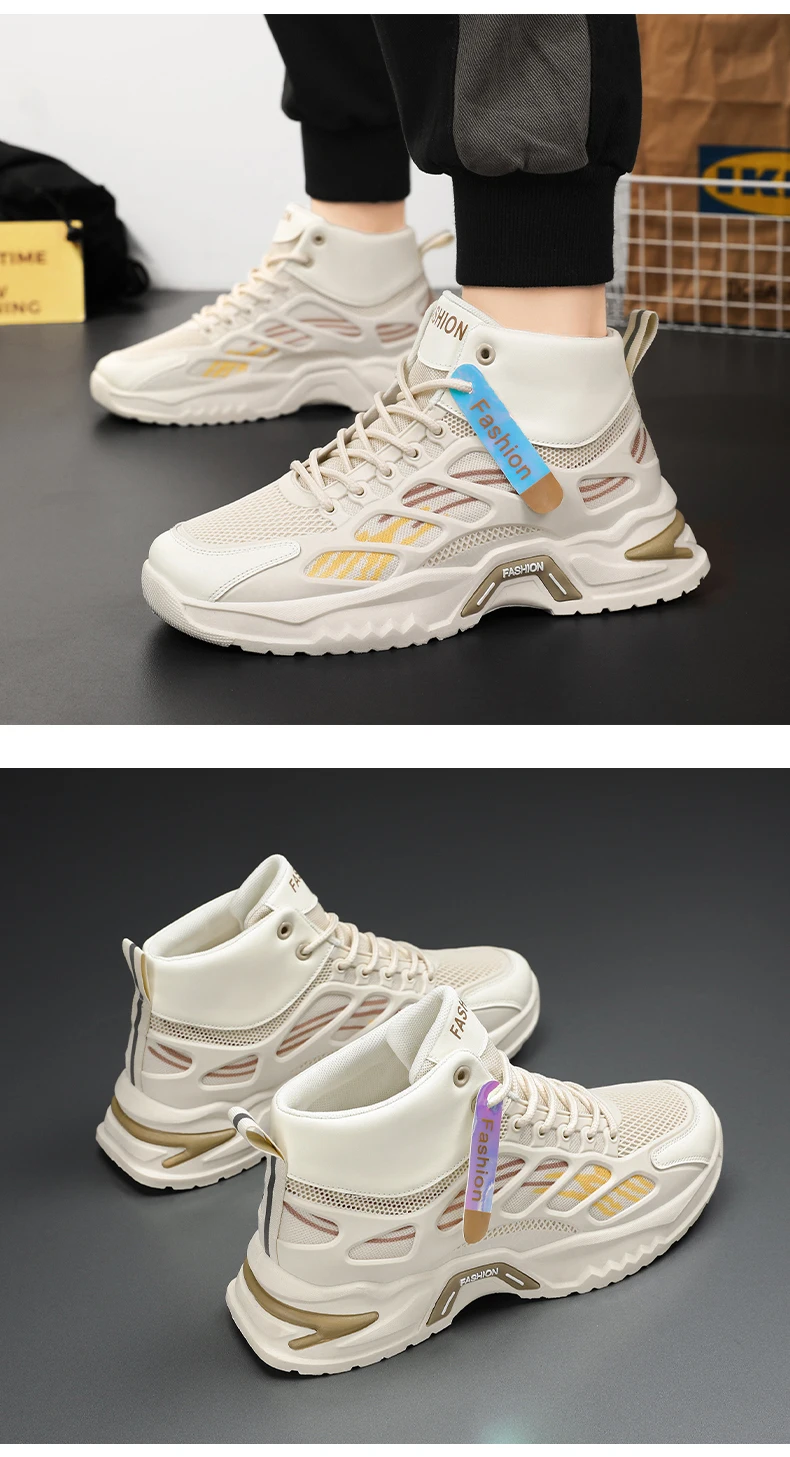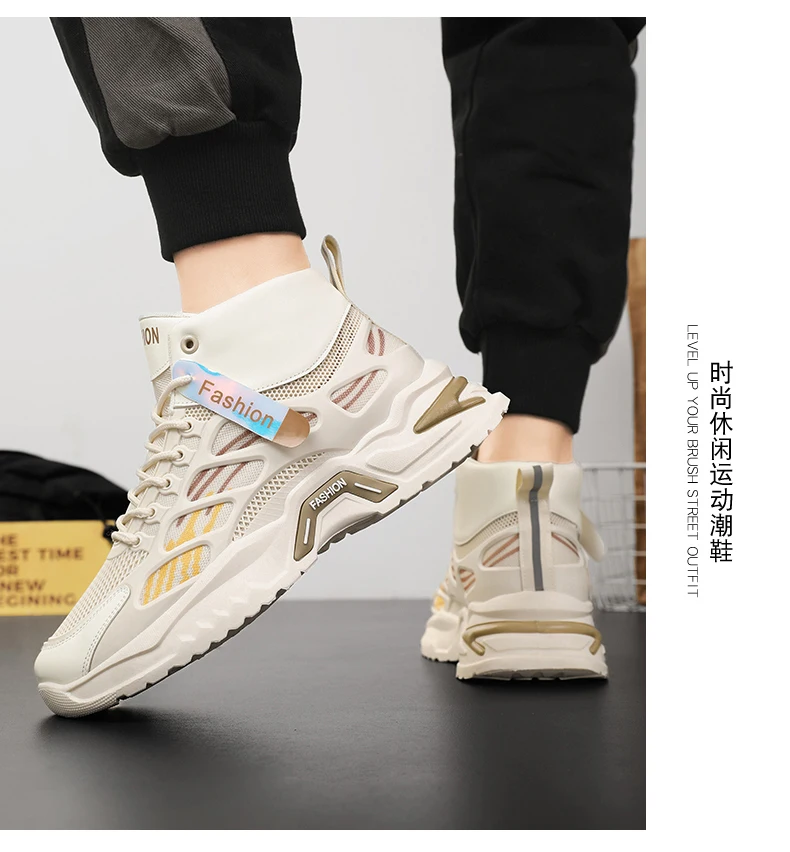 Student casual sports shoes Four Season Breathable high top anti slip soft sole comfort outdoor men's running shoes male sneaker
