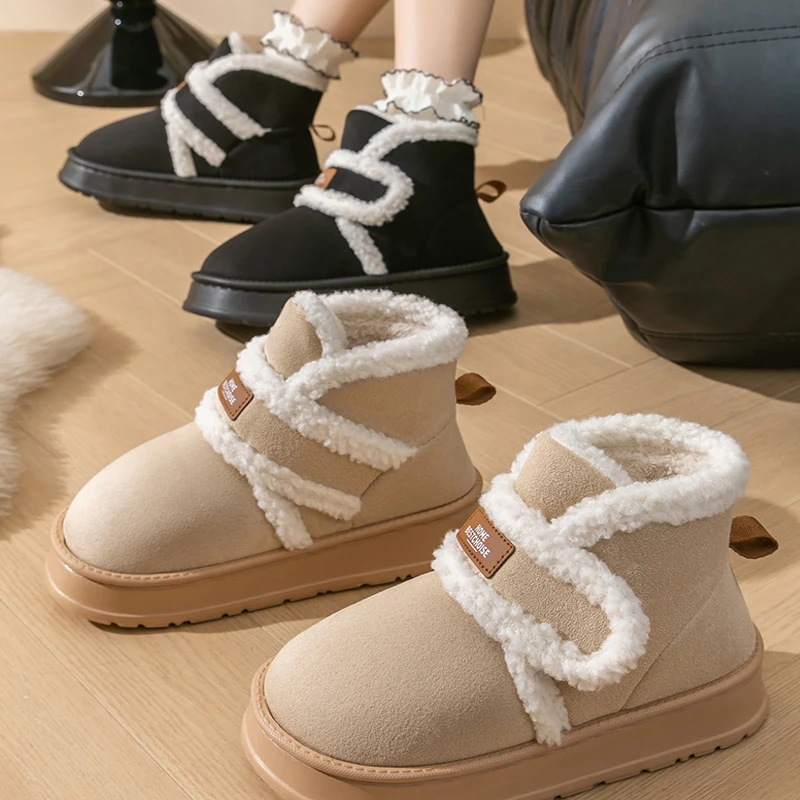 Thick Soled Snow Boots For Women Fluffy Plush Faux Fur Soft Slippers Winter Indoor Comfortable Home Non-slip Cotton Shoes