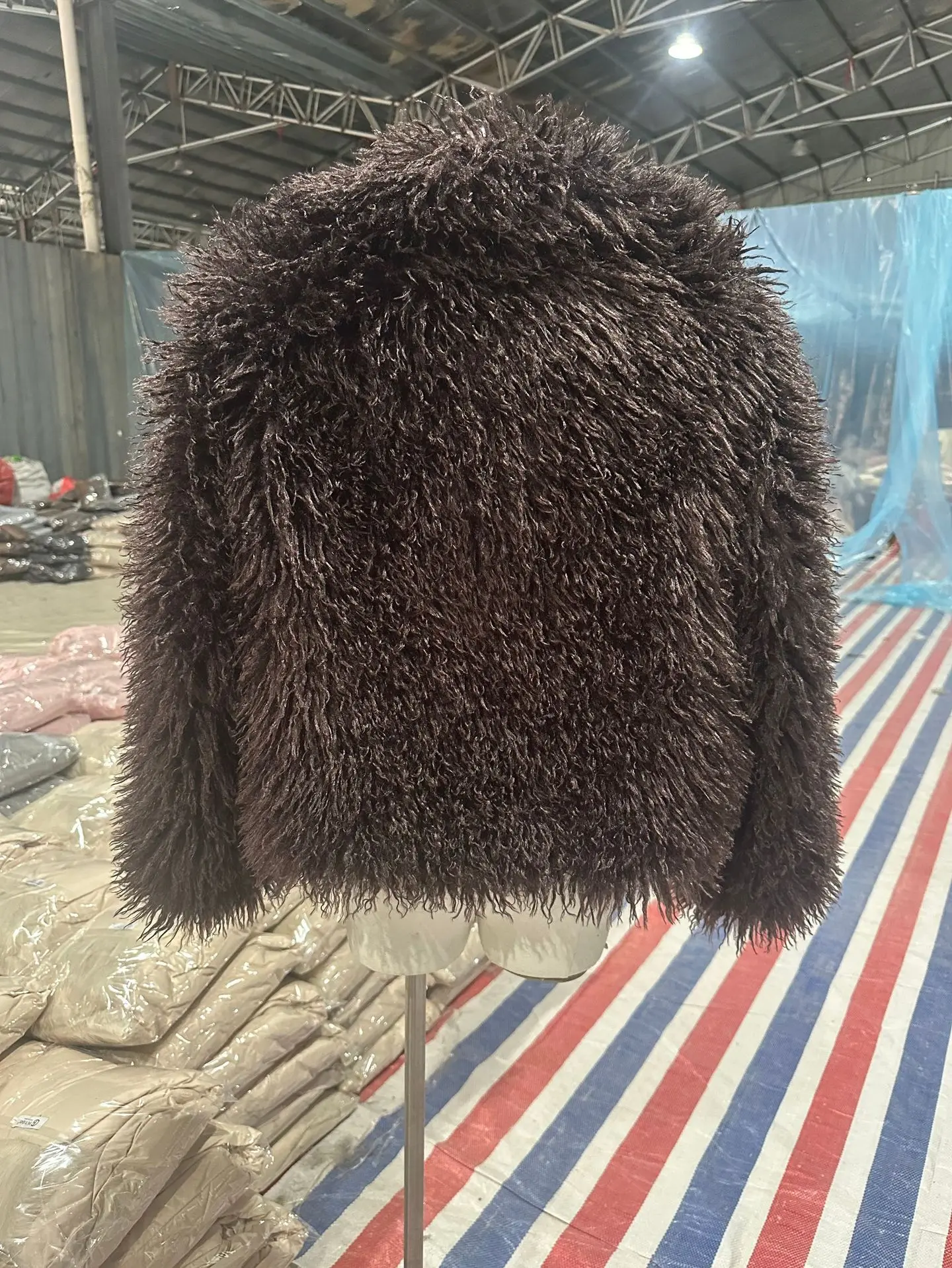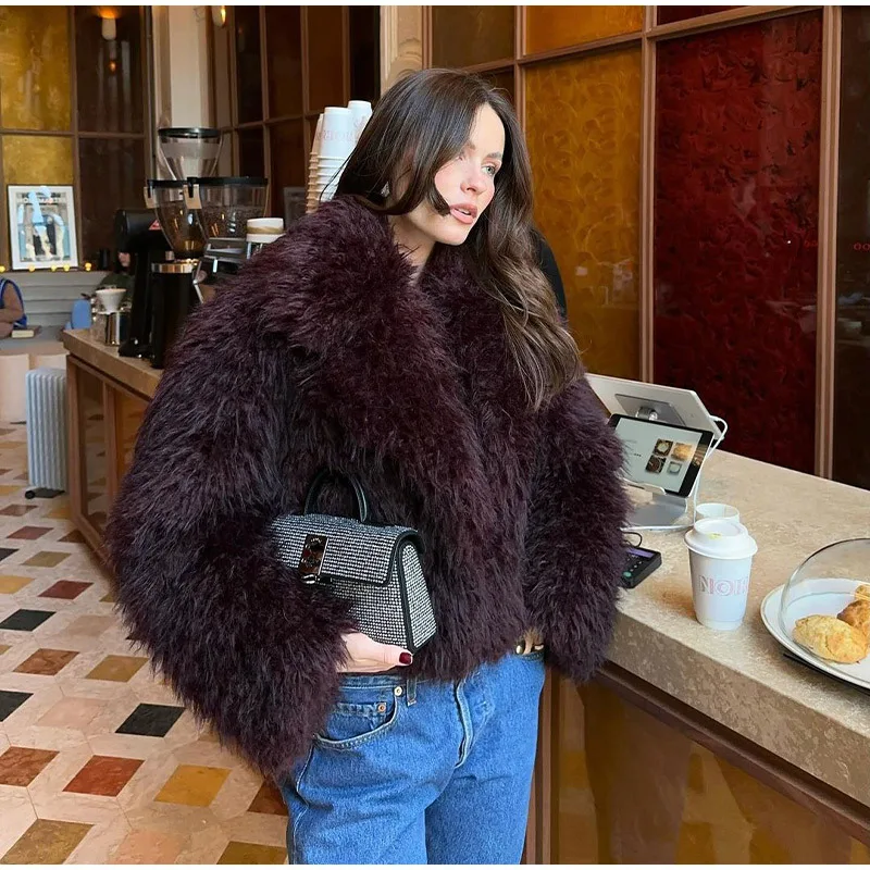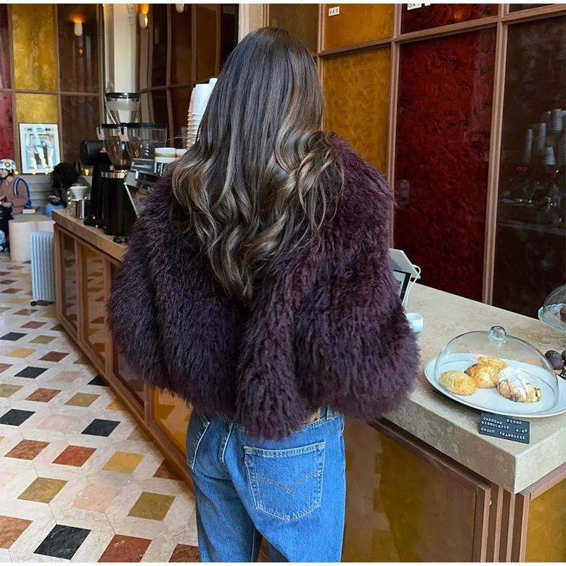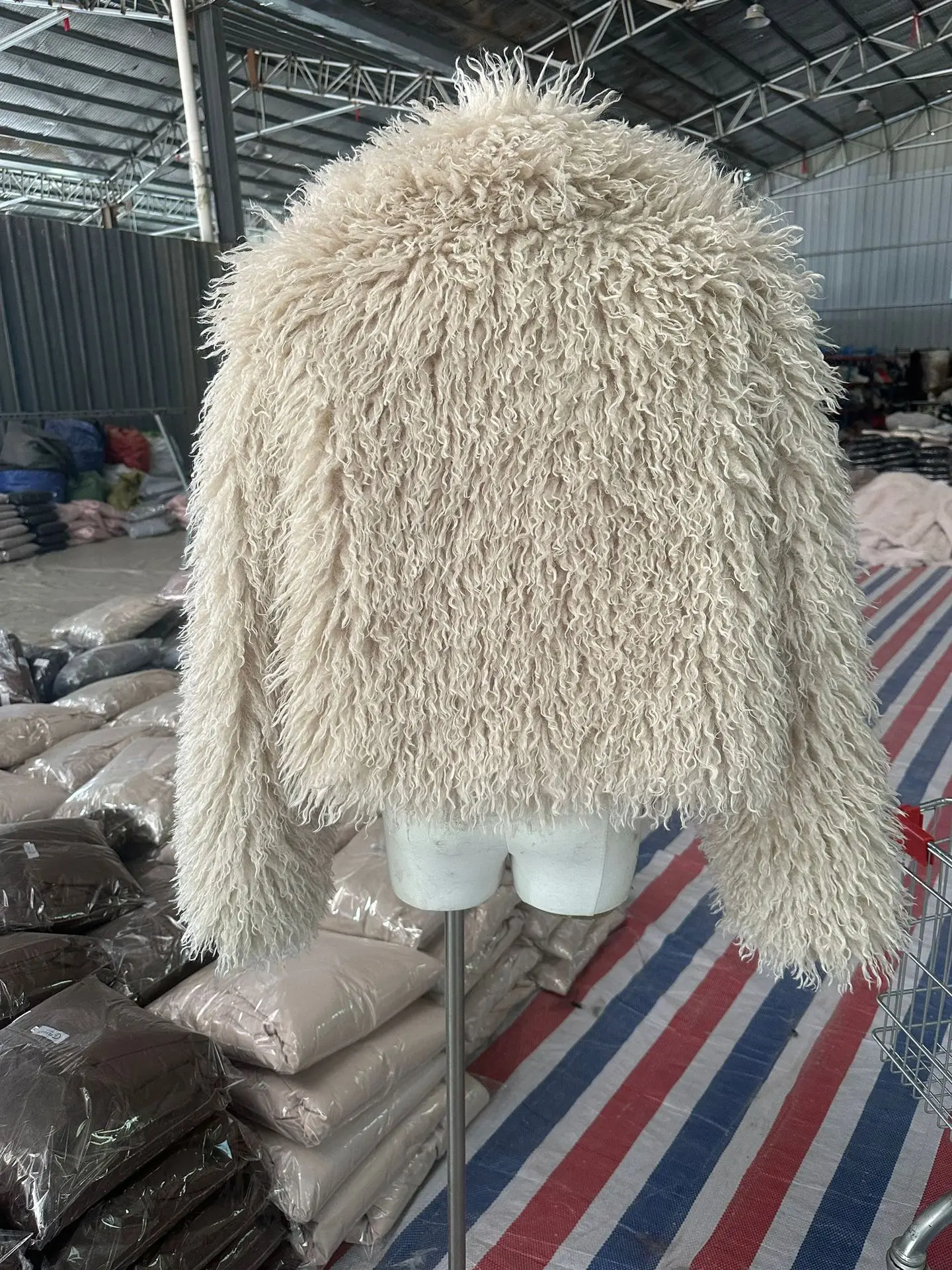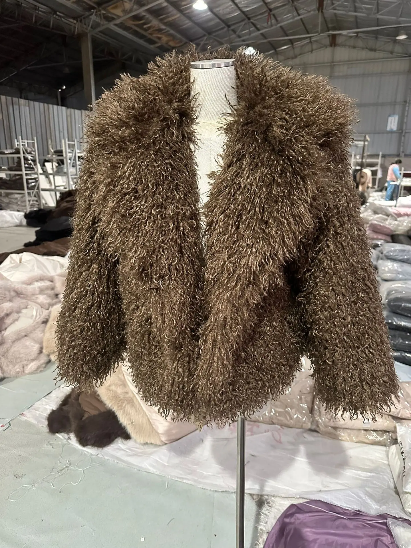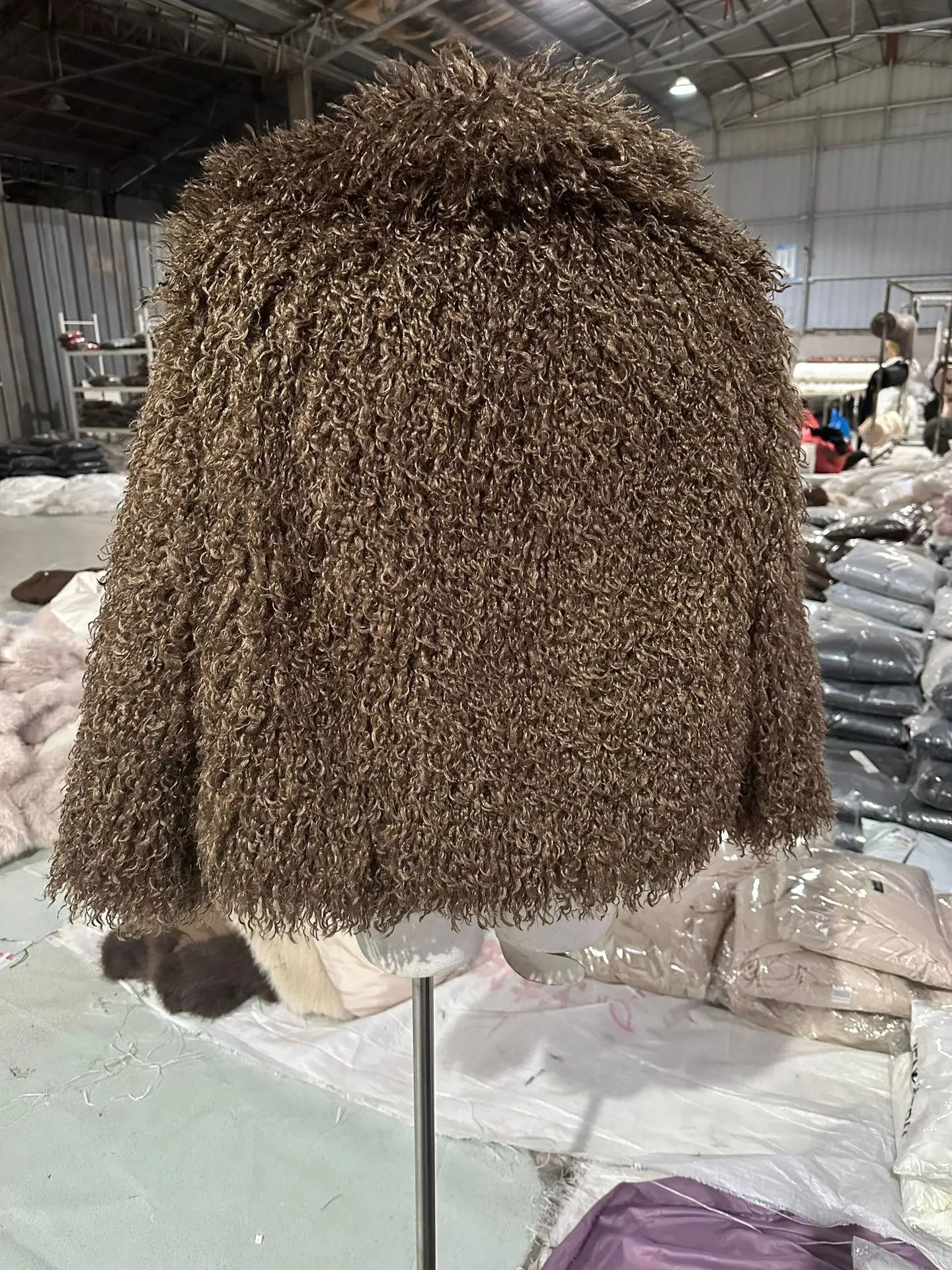 Thickened Winter Women's Artificial Wool Fur Coat Short Tan Sheep Long Hair Cardigan For Female Street Plush Lady's Outwear