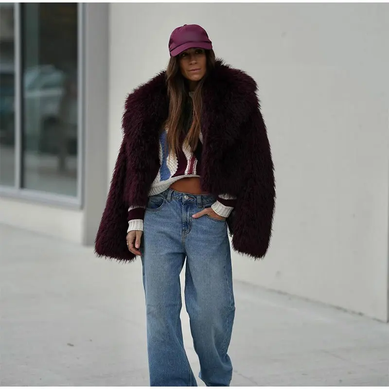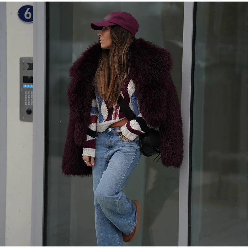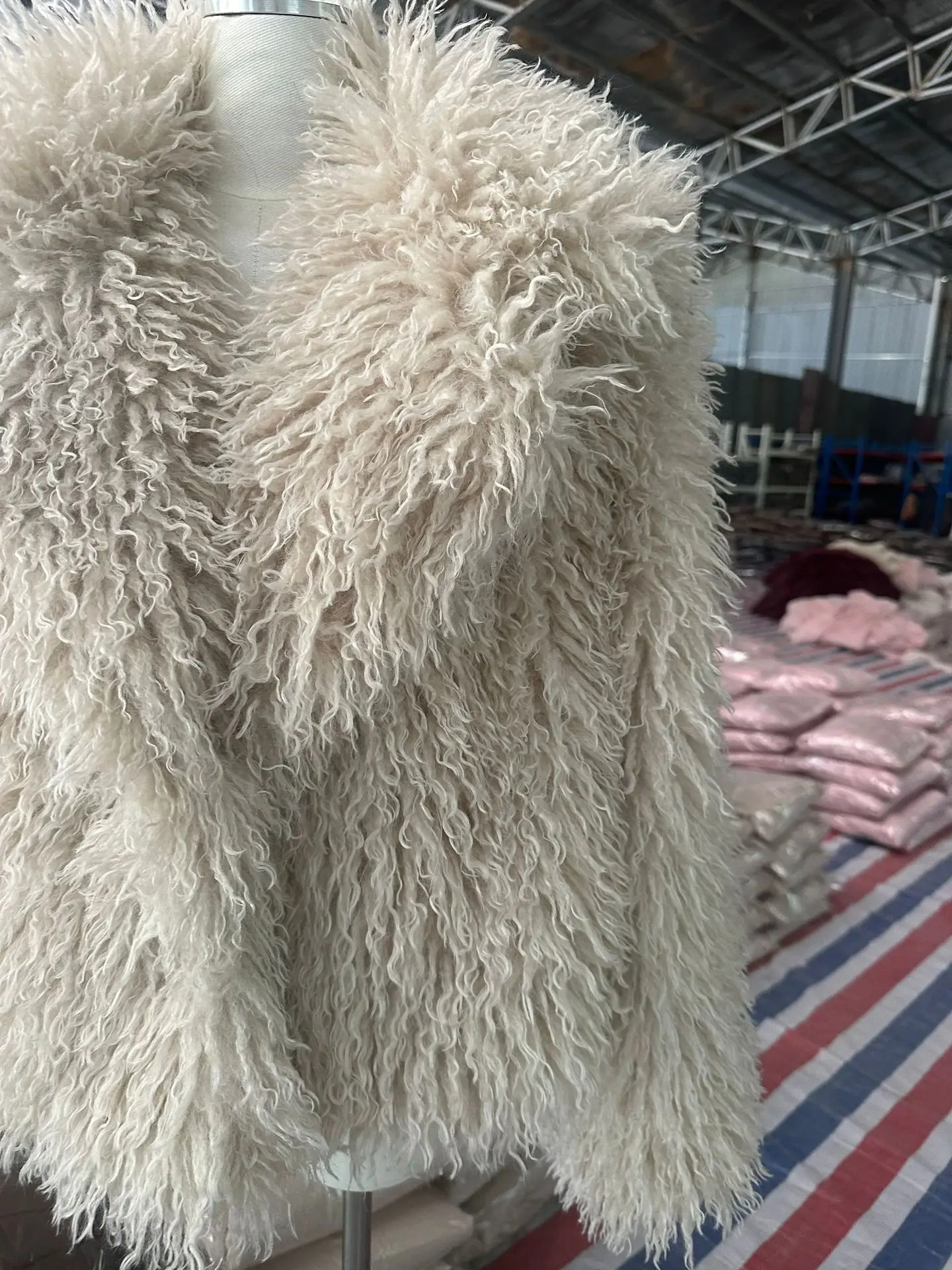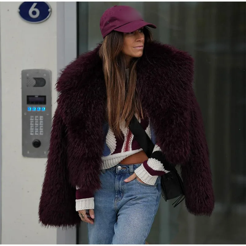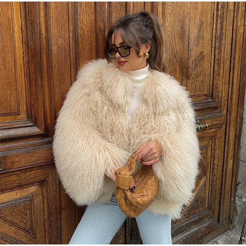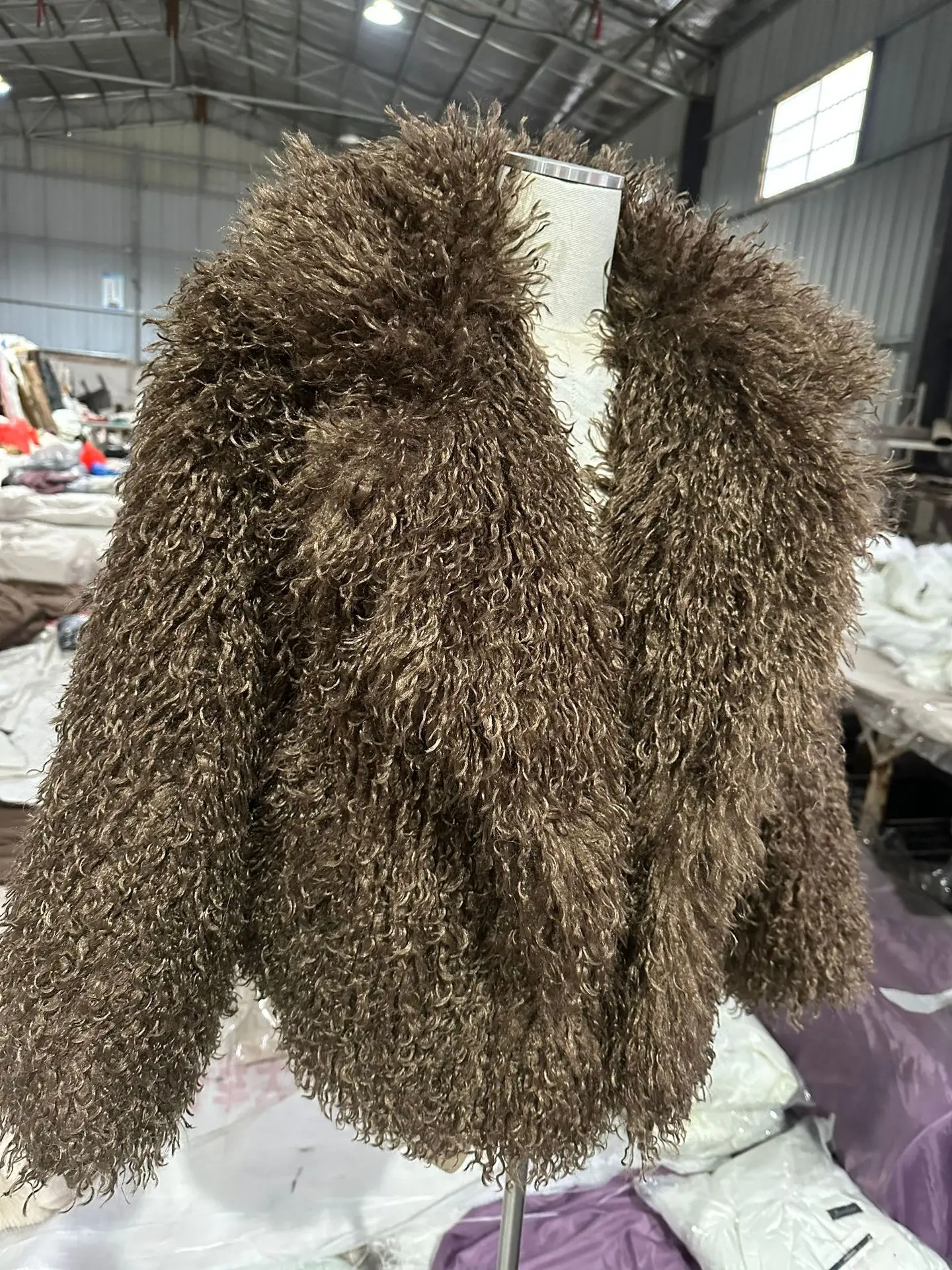 Thickened Winter Women's Artificial Wool Fur Coat Short Tan Sheep Long Hair Cardigan For Female Street Plush Lady's Outwear