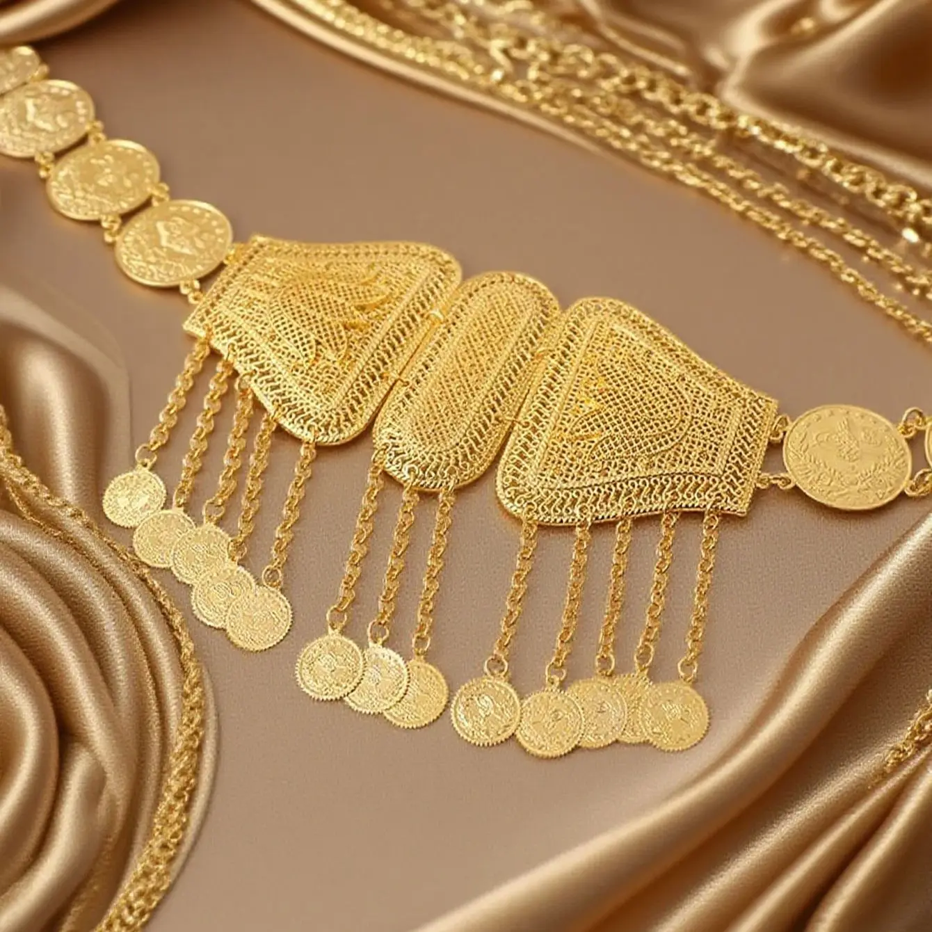 Turkish kurdish women belt gold plated arab middle east coin chain belts festival wedding costume jewelry