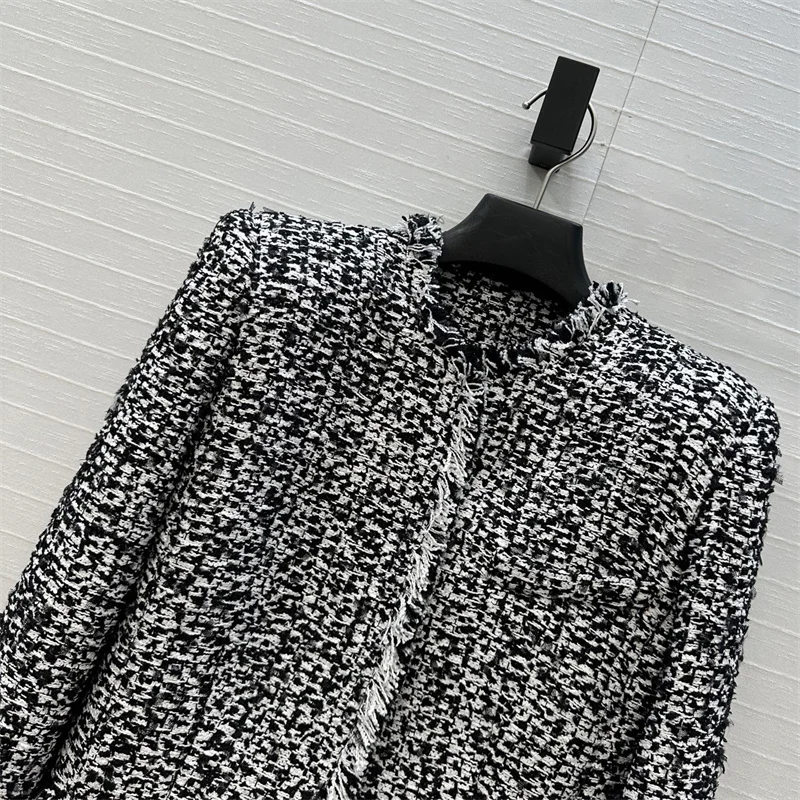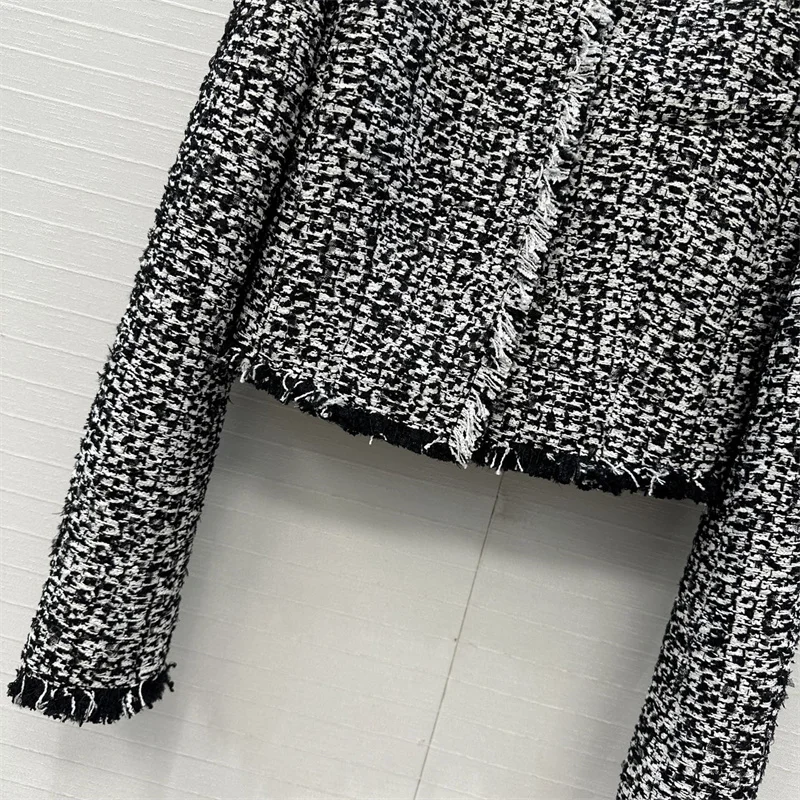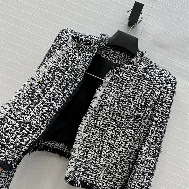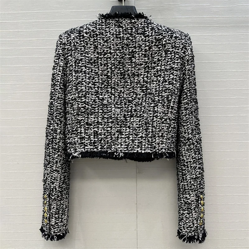 Women's jacket New winter 2025 shoulder padded slim fit long sleeved top Cotton blend women's coat tweed short jacket outerwears